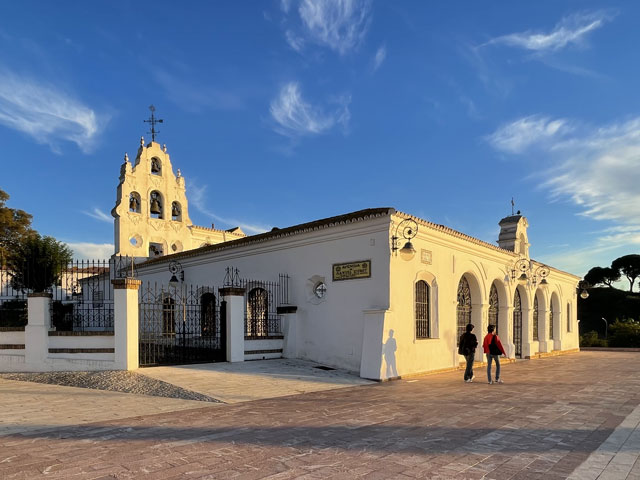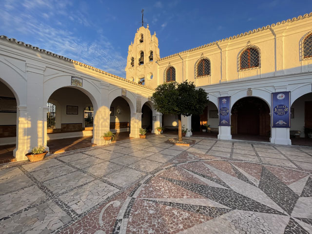 Britta und Thomas, die ich vor drei Tagen getroffen habe, erzählten mir, dass sie in Huelva in einem Kloster übernachtet haben, worauf ich bei Google nach „Übernachten Kloster Huelva“ gesucht habe und von Booking.com, Expedia usw. Übernachtungen in Klöstern weltweit, aber nicht in Huelva angeboten bekommen habe. Und das Kloster „La Rábida“ in Huelva (Monasterio de Santa María de La Rábida), das man besichtigen kann und wo die Reisegruppen hin gekarrt werden, schied irgendwie aus. Nach wiederholtem Abhören der Sprachnachrichten war klar, dass es sich nur um das „Santuario de Nuestra Señora de la Cinta“ am nördlichen Stadtrand von Huelva handeln kann. Da werde ich also heute übernachten.