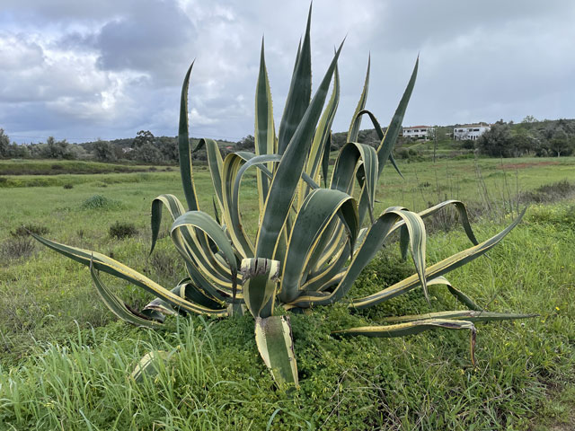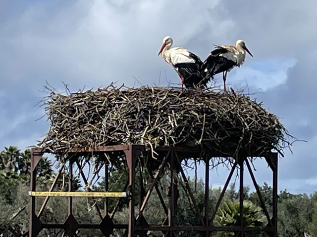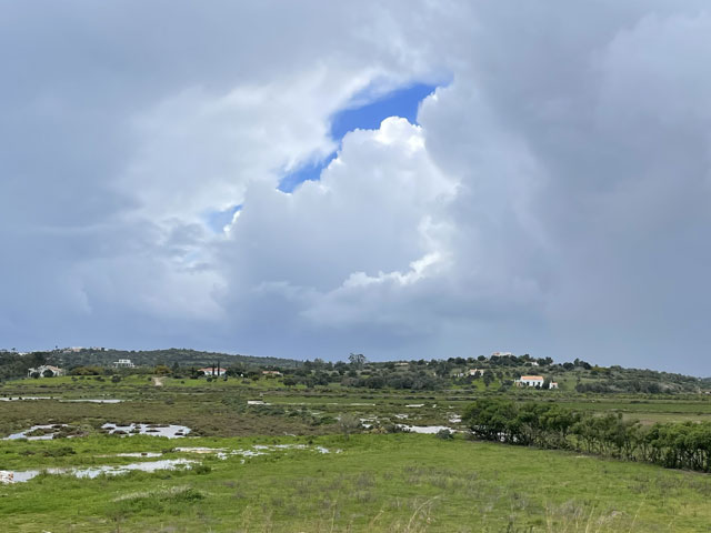 Mit anderen Worten: es hat mit einigen Unterbrechungen den ganzen Tag geregnet. Schon in der Nacht war fast dauerhaftes Trommeln auf den Autodächern vorm Haus zu hören. Aber das Wetter hat sich an die Vorhersage gehalten. Als ich aus dem Bett bin, habe ich gesehen, dass für 8 Uhr nur Wind, aber kein Regen angekündigt war. Da habe ich mich beeilt, um diese Pause nutzen. Und die Vorhersage stimmte auf den Punkt: von fünf vor bis fünf nach acht kam nichts runter. Dummerweise habe ich die Tür ins Schloss fallen lassen, als ich fünf nach acht aus dem Hostel getreten bin. Zum Glück gab es da aber einen überdachten Hauseingang, wo ich in aller Ruhe das Anlegen des neuen Regenponchos üben konnte. Da muss nämlich jeder Griff sitzen. Während bei uns üblicherweise der Regen langsam anfängt und dann stärker wird, geht es hier meist auf einen Schlag los. So, als ob jemand einen Eimer auskippt. Da schafft man es kaum, den Rucksack abzusetzen und den Poncho rauszuholen. Eh man den angezogen hat, ist man schon mal nass. Ich hatte heute nur eine kurze Strecke vor mir. Da ich in Portimão am westlichen Stadtrand genächtigt habe, waren es bis Lagos auf direktem Wege nur 17 Kilometer. Da hätte ich mich gut noch eine Weile im Bett räkeln können. Aber nun war ich einmal draußen, da musste ich auch los. Der Routenplaner hat fast für die ganze Strecke die Straße vorgeschlagen. Das war aber überwiegend die ziemlich stark befahrene EN 125, auf der es keinen Spaß macht zu laufen, obwohl es dort eine WhatsApp-Spur gibt, also eine Spur, in welche jene Autofahrer langsam einschwenken, die unbedingt bei der Fahrt Telefonieren, WhatsApps schreiben oder Lieferscheine sortieren müssen. In dieser Spur standen aber viele Pfützen und man musste immer eine Lücke in der Fahrzeugkolonne abwarten, um diese umrunden zu können. Bei der nächstbesten Gelegenheit bin ich deshalb nach rechts (Norden) runter von der Fernstraße und auf einem Umweg über Figueira und Mexilhoeira Grande gelaufen. Weitere Umgehungsmöglichkeiten gab es nördlich der Fernstraße nur auf fragwürdigen Feldwegen, weshalb ich wieder reumütig zurück an den Fahrbahnrand bin. Nach links, in Richtung Meer, gab es bis Odiáxere gar keine Ausweichmöglichkeiten, weil sich da ein sumpfiges Flussdelta mit Salinen mittendrin ausbreitet. Für Vögel, insbesondere Störche, ist das im wahrsten Sinne des Wortes ein gefundenes Fressen. Auf einem Grundstück standen dicht bei dicht Bäume, die auf etwa vier Meter Höhe gekappt und mit einem Nest versehen waren, manche keine 20 Meter von der Straße entfernt. Und alle Nester waren belegt. Der Straßenverkehr scheint die Tiere gar nicht zu stören, aber wenn man zu Fuß in gleicher Entfernung vorbeikommt, dann fliegen die sonst seelenruhig auf der Erde pickenden Störche ganz aufgeregt davon. Die Störche oben in den Nestern lassen sich auch von einem Fußgänger nicht stören. In Odiáxere ergab sich die zwingende Notwendigkeit, einzukehren, da es wieder stärker regnete. Zum Glück gibt es hier in den kleinsten Orten eine unglaubliche Kneipendichte, so dass man in bewohnten Gegenden nicht im „Regen stehen gelassen“ wird. Aber bei so viel Regen muss man schon aufpassen, dass die Leber mitmacht. Von Odiáxere kommt man auf einer nur wenig befahrenen, kleinen Straße ans Meer - vorbei an Golfplätzen und Nobel-Villen, von denen gerade Unmengen hochgezogen werden. Die Gegend ist auch wirklich ganz nett: sehr grün und zum Meer hin abfallend, so dass man auch in größerer Entfernung noch Meeresblick hat, sofern man kein Haus vor die Terrasse gesetzt bekommt. Am Ufer zieht sich fast schnurgerade ein breiter, von Dünen begrenzter Strand hin. In den Dünen stehen wie schon gehabt diverse Restaurants, die durch Holzstege mit dem Strand und mit einem sich die ganze Düne entlangziehenden Holzweg verbunden sind. Parallel zur Düne verläuft eine Regionalbahnlinie, dahinter eine Straße, die auf der anderen Seite mit teilweise recht noblen Hotels bebaut ist. Der Wind, der heute neben dem Regen wetterbestimmend war, hat für ordentlichen Wellengang gesorgt. Das hat viele Surfer und Wellenreiter angelockt. Auf den letzten paar hundert Metern vor der Stadt war ein regelrechtes Gedrängel auf und in den Wellen. Hier kann man nämlich gleich hinter der Düne gut und kostenlos parken und ist mit seinem Brett schnell am Wasser. Heute, am Sonnabend, sind offenbar viele der Wellen wegen an den Strand gefahren. Aber einige Wellenreiter, darunter auch Deutsche, sahen aus, als ob sie überhaupt nichts anderes machen. Und ganze Familien mit Neoprenanzug und Surfbrett habe ich gesehen. Ein für mich neues Detail ist mir hier aufgefallen. Einige Autos hatten an der Anhängerkupplung oder an einer anderen sicheren Stelle eine Schlüsselbox zu hängen. Clever: man lässt alles im Auto, schließt ab und packt den Schlüssel in die Box. Da muss man (außer dem Zahlencode) nichts mit aufs Brett nehmen oder am Strand ablegen. Lagos wird durch einen Fluss, die Ribeira de Bensafrim, in zwei Teile geteilt. Die eigentliche Stadt liegt westlich davon, also am anderen Ufer. Auf der Ostseite des Flusses, wo ich angekommen bin, sind eigentlich nur Hafenbecken mit den zugehörigen Serviceeinrichtungen, Gaststätten und der Bahnhof. Um rüber in die Altstadt zu kommen, muss man ein ganzes Stück landeinwärts und um ein Hafenbecken herum bis zu einer Fußgängerbrücke laufen. Auf den ersten Blick hat Lagos nicht viel zu bieten. Was anderswo die Strandpromenade ist, ist hier die Promenade entlang des Flussufers. Die ist wie die Seiten- und Nebenstraßen mit vielen Gaststätten und Geschäften bestückt - so wie überall in den Küstenstädten. Aber hier gibt es wenigstens noch eine richtige Altstadt mit einigen Kirchen, einer noch ganz gut erhaltenen Stadtmauer und einer kleinen Festung kurz vor der Flussmündung. Mein Hostel ist so ziemlich mittendrin. Als ich nach der äußeren Inspektion der Stadtmauer wieder in Richtung Ze