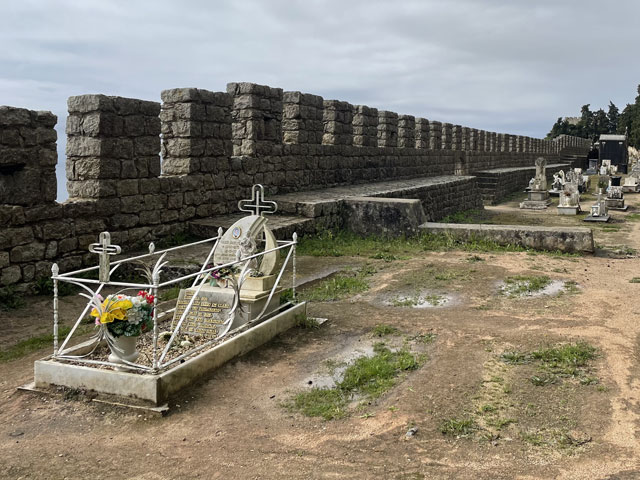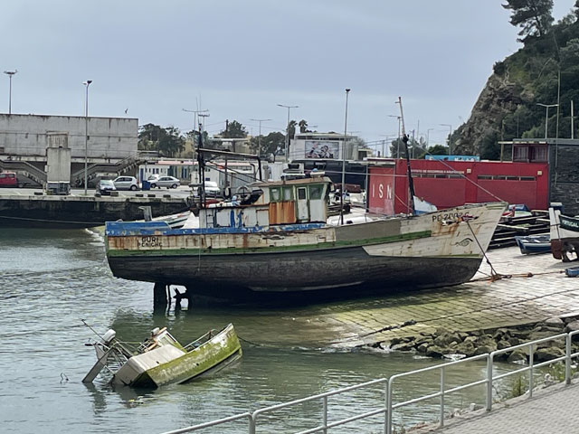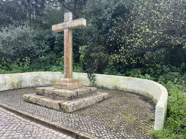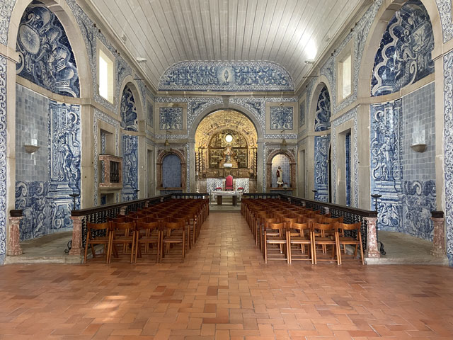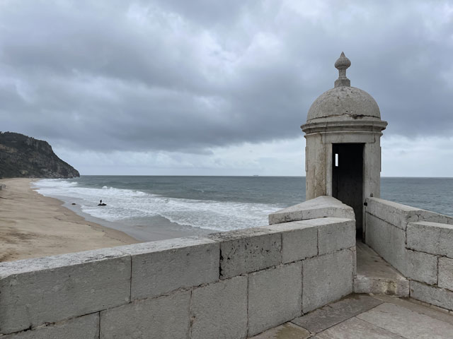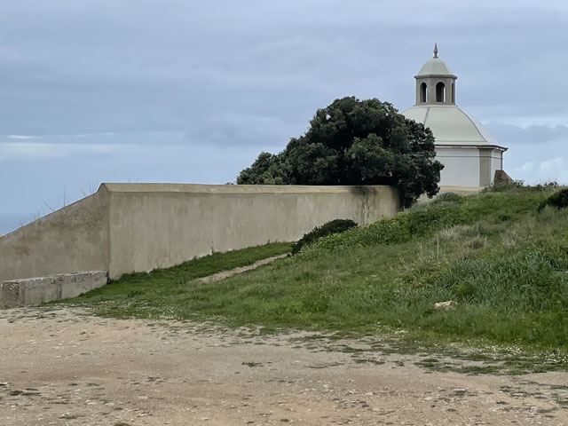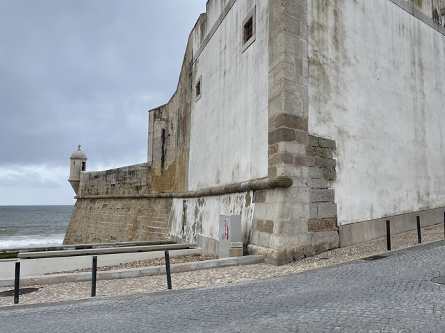 Die Burg von Sesimbra, die ich bislang wegen Regen oder Nebel nur selten zu sehen bekam, war mein erstes Besichtigungsziel. Am Ende der Straße, die von meinem Quartier wegführt, sind zwei Zugänge zur Burg, ein kurzer, steiler Aufstieg für Fußgänger und die Straße, die halbwegs moderat auf der Nordseite des Burgberges nach oben führt. Bergauf habe ich den steilen Aufstieg gewählt, der gar nicht so leicht zu bewältigen war, weil die glatten Pflastersteine noch vom Regen nass und rutschig waren. Oben angekommen, habe ich über den guten Zustand der Befestigungsanlagen gestaunt. Ich habe dann aber gelesen, dass die in ihren Anfängen aus den 9. Jahrhundert stammende und immer wieder erweiterte Burg schon mal bis zur Ruine verkommen war und ab 1933 aufwändig saniert wurde. Jetzt sitzt wieder jede Zinne in voller Schönheit an ihrem Platz auf der Mauer. Nur eine unschöne Lücke gibt es in der Mauer - dort wo die Straße auf das Burggelände führt. Hier hat man einfach ein Stück Mauer entfernt oder nicht wieder aufgebaut. Erfreulicherweise kann man die gesamte Mauer auf dem Wehrgang ablaufen. So kommt man auch an einem alten Friedhof auf dem Burggelände vorbei und landet an der Nordspitze beim eigentlichen Castello, einem vom Burggelände nochmal durch eine Mauer abgetrennten Bereich, in dem der Burgherr mit seiner Familie wohnte. Mitten auf dem Gelände steht eine außen sehr schlichte, aber innen recht sehenswerte Kirche, die erfreulicherweise offen stand. Das ist wieder eine, die innen ringsum mit blauen Kacheln versehen ist, auf denen biblische Motive dargestellt sind. Natürlich habe ich von der Burgmauer nicht nur den Blick auf die eigentliche Stadt am Meer genossen, sondern auf der anderen Seite der Burg auch nach meiner letzten Unterkunft Ausschau gehalten. Die konnte man ganz prima erkennen und man hätte auch sehen können, ob da jemand im Pool ist. War aber keiner! Von der Burg runter bin ich die Zufahrtsstraße auf der Nordseite bis zu meinem Ausgangspunkt und dann einen Fußweg auf der Südseite des Burgberges runter in die Stadt. Da gibt es etwas Altstadt mit ein paar netten Gassen und vielen Geschäften, umringt von bedingt sehenswerten Neubaugebieten. Unten am Wasser bin ich ganz unerwartet auf eine weitere Festung gestoßen: das Forte de Santiago. Das steht direkt am Stand und hat zum Wasser hin richtige Festungsmauern mit Wachttürmchen. Zur Stadt hin besteht die Befestigung darin, dass die dorthin zeigenden Wände der Festungsbauten keine oder sehr hoch angeordnete Fenster haben. Insgesamt war die Befestigung aber nicht so, dass sie einem Angriff von Piraten oder fremden Heeren standgehalten hätte, aber ein paar betrunkenen Söldnern hätte sie sicher getrotzt. Die Gebäude dieser kleinen Festung beherbergen das Museum von Sesimbra, das heute am Montag leider geschlossen ist. Von der Festung aus ging es zunächst ein Stück auf der Straße westwärts, dann auf Holzwegen am Stand an ein paar Gaststätten vorbei und schließlich wieder auf der Straße vorbei an den Hafenanlagen. Da gab es zunächst den kleinen Hafen einer Reparatur-Werft, dann den Fischereihafen und schließlich einen großen Sportboothafen. Aber nichts, wo ein Frachtschiff hätte anlegen können. Am Sportboothafen ist die Straße eigentlich zu Ende, aber es ist möglich und erlaubt, den ab hier bergauf führenden Wanderweg (GR 11) auch mit dem Auto zu befahren. Der Weg umkurvt die Reste einer weiteren Festung, die jetzt die Basis eines kleinen Leuchtturmes sind, um dann permanent aufwärts zu führen, vorbei an den Hinterlassenschaften eines Steinbruchs, die den Weg noch deutlich überragen. Endlich oben angekommen, stößt man auf die Fernstraße EM 569, die zum meinen heutigen Ausflugsziel, dem Kap (Cabo) Espichel führt. Ich bin aber nicht lange auf der Straße geblieben, sondern bald mit dem Wanderweg GR 11 nach links in die Wildnis abgebogen, um der Straße mit gut hundert Metern Abstand westwärts zu folgen. Dabei bin ich an einer umzäunten Antennenanlage vorbeigekommen, die auch gut als Landeplatz für Ufos durchgehen würde. Hinter Azóia stößt der Weg dann wieder auf die Fernstraße, der man nun noch etwa 1,5 km folgen muss, begleitet von einem nur wenige Meter über dem Boden verlaufenden, überdachten Aquädukt. Auf diesem Stück fing es dann an zu regnen, immerhin zwei Stunden später als angedroht. Kurz nach vier war ich am Cabo Espichel, wo es zwei Sehenswürdigkeiten gibt: einen markanten Leuchtturm, den ich mir nur von weitem angeschaut habe, und die Wallfahrtskirche „Nossa Senhora do Cabo“, die montags leider nicht zu besichtigen ist. Noch viel eindrucksvoller als die äußerlich schon ziemlich abgeschrammte Kirche sind zwei lange, zweigeschossige Anbauten auf jeder Seite, die vor der Kirche einen langen, rechteckigen Platz flankieren. Diese „Pilgerhäuser“ genannten Bauten wurden zwischen 1715 und 1760 gebaut, um die vielen Wallfahrer unterzubringen und zu versorgen. Das Untergeschoss mit Arkaden enthielt Geschäfte und im Obergeschoss waren die Schlafsäle. Da hat man sicher ein paar hundert, wenn nicht tausend Pilger untergebracht. Und das Aquädukt diente wohl dazu, die Pilger mit Wasser zu versorgen. Zu beiden Seiten der Kirche sind Durchgänge, durch die man auf einen großen Platz direkt am Kap gelangt. Hier hat man an der Kante der Steilküste sogar mal ein Geländer angebracht, damit da nicht zu viele herunterpurzeln. Außerdem stehen da Schilder, die vor dem instabilen Felsen und dem starken Wind warnen. Für heute gab es auch wieder in der Wetter-App eine „Schwere Küstenunwetterwarnung“ mit Wellen von 5…6 und vereinzelt 11 Metern Höhe. Mit dem Regen war zwar Wind aufgekommen, aber so schlimm sah es auf dem Wasser gar nicht aus. Nördlich des Kaps schlugen ein paar einzelne, hohe Wellen ans Land, aber das war überhaupt nichts gegen den Wellengang am Fischerweg. Für den Fall, dass es da rings um die Wallfahrtskirche was zu besichtigen gibt und es d