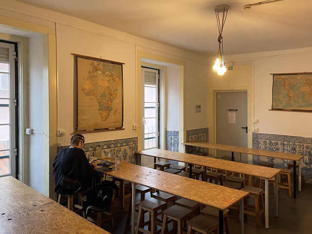 Ich habe wunderbar geschlafen. Wir waren nur zu zweit im 6-Bett-Zimmer (zwei Einzel- und zwei Doppelstockbetten). Mein Companion war Guilherme, ein junger portugiesischer Immobilienmakler aus Portimão, der bei RE/MAX offenbar noch nicht so reich geworden ist, dass er im x-Sterne-Hotel übernachten kann. Da er wohl schon ein paar Nächte in der Jugendherberge war, wusste er, dass es da trotz des Radiators nachts recht kühl wird und hat sich deshalb gleich mit Jeans und Pullover ins Bett gelegt. So verschieden sind die Menschen: Ein paar Mädels kamen dafür zum Frühstück im Schlafanzug. Das Frühstück war übrigens recht gut. Neben diversen Süßkram gab es auch Wurst und Käse, was bei mir Bewertungskriterium ist. Neben dem durchaus trinkbaren Kaffee aus einer Thermophore konnte man sich auch kostenfrei Espresso und ähnliches aus dem Automaten ziehen. Da ich keine Eile hatte, habe ich diese Rahmenbedingungen genutzt und sehr ausgiebig gefrühstückt.