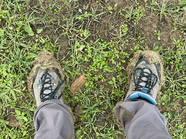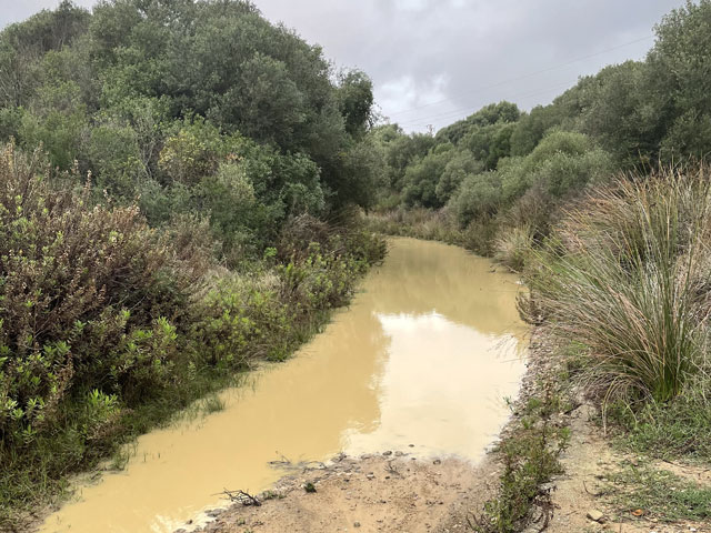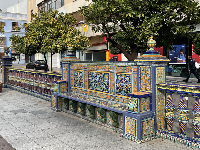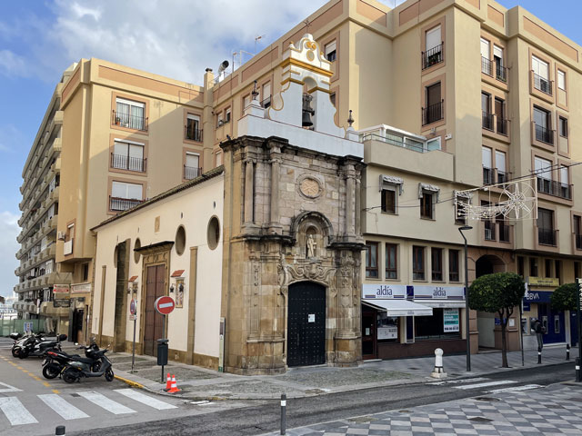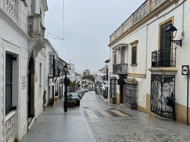 Es bestand die Wahl zwischen der Uferstraße nach Algeciras und dem Weg durch die offene Landschaft über San Roque. Für mich als Rochus-Fan kam nur Letzteres in Frage. Dem Weg dorthin war aber anzumerken, dass es gestern hier ordentlich geregnet hat. Er war völlig aufgeweicht und mit Pfützen versehen, welche die ganze Wegbreite einnahmen. Irgendwie gelang es mir doch, alle zu umrunden, ohne nasse Füße zu bekommen. Allerdings waren die Schuhe bald so mit Schlamm bedeckt, dass sie bestimmt das doppelte Gewicht hatten. Die größte Gefahr bestand auf diesen knapp acht Kilometern darin, im Schlamm stecken zu bleiben. Baron Münchhausen hätte sich in einem solchen Fall selbst an den Haaren aus dem Schlamm gezogen, aber bei meiner Glatze ist das keine Option. Als kurz vor San Roque die ersten Tropfen runter kamen, bestand die Wahl zwischen dem spärlichen Schutz eines knorrigen Olivenbaums oder einem schnelleren Schritt. Letzteres hat mich nach San Roque und dort in eine rettende Kneipe geführt, bevor der Regenguss richtig losging. Mit meinen schlammigen Füßen habe ich mich da aber nur bis an die Theke getraut, wo ich aber auch das von mir geliebte Tomaten-Toast serviert bekam. Nach einer dreiviertel Stunde, etwa um halb elf, hat der Regen aufgehört und ich konnte mich wieder aus der Kneipe wagen. Obwohl ich schon am richtigen Weg raus aus der Stadt war, habe ich doch noch einen Abstecher ins Zentrum zur Marienkirche gemacht, die natürlich verschlossen war. Aber die nahe gelegene Touristen-Information war geöffnet und der Herr am Tresen hat mir nicht nur einen prächtigen Stempel der Via Serrana in den Pilgerpass gedrückt, sondern auch noch aus dem Lager eine Aluminium-Tasse mit dem gleichen Aufdruck geholt. Die hat als Griff einen Karabinerhaken, mit dem man sie leicht außen am Rucksack befestigen kann. Das ist sehr praktisch, aber eigentlich ist die Tasse viel zu schön, als sie zu benutzen. Die Via Serrana ist übrigens der Jakobsweg, der von La Linea über Ronda mehr oder weniger direkt nach Sevilla führt. Der verläuft aber durch ziemlich verlassene Gegenden und über die Berge, was im November nicht mehr zu empfehlen ist und bei den aktuellen Wetterbedingungen ganz ausscheidet. Ich bin gestern in La Linea extra noch zur Santiago-Kirche gelaufen, wo die Via Serrana beginnt, was mit einer großen Camino-Kachel und der Angabe „km 0“ an der Kirchenwand kundgetan wird. Da mir dort der Pfarrer in die Arme gelaufen ist, habe ich sogar noch den passenden Stempel abgefasst. Weil die Via Serrana, die ich gestern noch als Heimweg benutzt habe, ganz dicht an meiner Pension in La Linea vorbeiführt, war ich heute früh nach wenigen Schritten wieder auf diesem Weg, den ich bis San Roque nicht wieder verlassen habe. Leider ist der Weg auf dem ersten Stück hinter der Stadt völlig vermüllt. Da reiht sich ein Bauschutthaufen an den anderen, was ich in dieser Konzentration bisher in Spanien noch nicht gesehen hatte. Der Herr in der Touristeninformation hat mir dann noch erklärt, welche Wege ich in Richtung Algeciras meiden soll und hat mir auf einem Zettel die Orte entlang der von ihm empfohlenen Route aufgeschrieben. Beim gemeinsamen Kartenstudium zeigte sich nämlich, dass Fußgänger im hiesigen Verkehrskonzept gar nicht eingeplant sind. Über die Flüsse, die zwischen San Roque und Algeciras in Richtung Meer fließen, führen nämlich ausschließlich Autobahnbrücken. Ein paar, aber längst nicht alle, lassen sich durch sehr große Umwege umgehen. Aber wenn ich eh an verschiedenen Stellen die Autobahnbrücken nehmen muss, kann ich das auch überall machen und mir die Umwege sparen. Schließlich sollte es am Nachmittag nochmal regnen. Wie sich vor Ort zeigte, waren die Brücken gar kein Problem, da dort immer zwischen der Leitplanke und dem Geländer ein schmaler Gang war. Aber um dort hin zu kommen, musste man oft lange Stücken am Fahrbahnrand laufen, was zwar ätzend laut und unangenehm war, aber nicht sonderlich gefährlich, da es da neben dem Standstreifen immer noch einen asphaltierten Randstreifen gibt. Und wenn man dort läuft, löst das nicht wie bei uns einen Großalarm aus. Die Besatzung eines entgegen kommenden Polizeifahrzeuges hat das überhaupt nicht gekümmert. Wenn vorhanden, habe ich natürlich die oft parallel verlaufende Service-Straße benutzt, wo man aber mitunter gefährlicher lebt als auf der Autobahn, denn Fußwege sind da eine Seltenheit und wegen der großen Gewerbegebiete entlang der Autobahn ist da ziemlicher Verkehr. Ein paar Kilometer vor Algeciras kam mir auf dem Standstreifen der Autobahn jemand mit einem Handwagen entgegen, der noch etwas zerlumpter aussah als ich. Ich habe freundlich gegrüßt und er hat gleich gefragt, ob ich Deutscher sei. Und schon waren wir in einem netten Gespräch - auf dem Standsteifen der Autobahn und an die Leitplanke gelehnt. Er, Emanuel, stellte sich als Pilger vor, der vor dreißig Jahren in München aufgebrochen ist. Er zieht durch die Gegend und verdient sich zwischendurch immer mal als Maler oder als Mundharmonikaspieler etwas Geld. Er hat betont, dass er kein Bettler ist. In seinem 150 kg-Wagen hat er neben Zelt, Ersatzteilen und Hausrat auch noch einen Hund zu sitzen gehabt. Er hat mir einen Wald kurz vor Cádiz empfohlen, wo man wundervoll zur Ruhe kommen kann. Er hat da gerade vier Monate meditiert … Als ich ihm sagte, dass ich in zwei Wochen in Sevilla sein will, hat das bei ihm ziemliche Verwunderung ausgelöst. „Ein Pilger in Hektik“ waren seine Worte. Dass es auf seinem derzeitigen Weg nach Alicante rings um Malaga Unwetterschäden gab, hatte er noch gar nicht mitbekommen. Aber das ist vielleicht auch gar nicht relevant, denn wer weiß, in wie viel Jahren er da vorbeikommt. In Algeciras angekommen, bin ich nicht gleich in mein am Abend zuvor gebuchtes Zimmer, sondern habe ich mich erstmal in der Stadt umgesehen. Dem Klima entsprechend stehen hier viele Palmen herum und der Jahreszeit entsprechend ste
