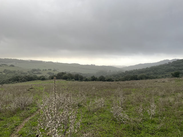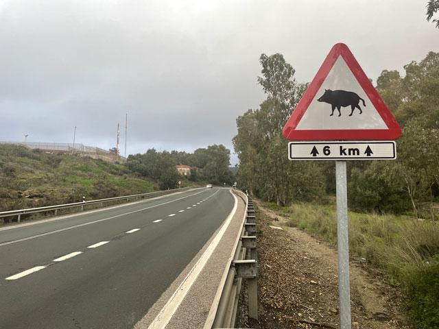 Heute morgen schien es gar nicht hell werden zu wollen. Das lag aber nicht an der Tageszeit, sondern an den tiefschwarzen Wolken, die über Algeciras lagen. Es war zwar trocken, aber ab 9 Uhr war Regen angesagt. Darum bin ich nicht schon in Algeciras auf den Jakobsweg (Via del Estrecho), der sich zwischen der Küste und der N 340 durch die Berge schlängelt. Wie der beschaffen ist, wusste ich nicht und ich habe befürchtet, dass ich bei einsetzenden Regen in den menschenleeren Bergen keinen Unterschlupf finde. Ich bin deshalb zunächst auf der N 340 geblieben, um im Falle eines Regengusses dichter an der Zivilisation zu sein. Der Begriff „Zivilisation“ ist in Anbetracht des Mülls am Straßenrand aber vielleicht nicht das richtige Wort.