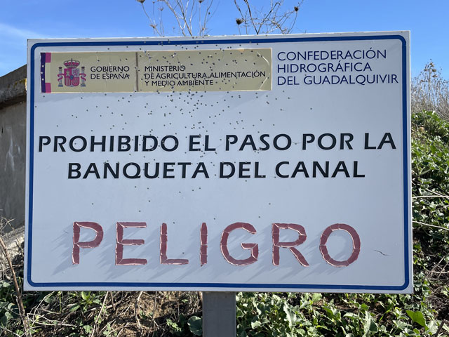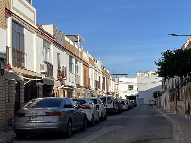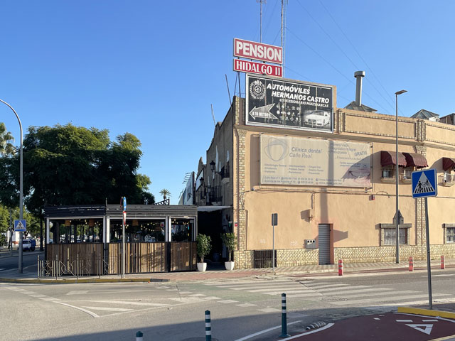 Gesagt, getan. Auf dem Weg habe ich nochmal nach Quartieren in Utrera, der nächstgelegenen Stadt auf dem Weg, Ausschau gehalten. Da gab es eigentlich nur eine halbwegs preiswerte Unterkunft, die Pension „Hidalgo 2“ mit Zimmern zu 29 €. Bezahlbar, aber in Anbetracht der Bewertung mit 5,4 („passabel“) vielleicht ein bisschen hoch angesetzt. Da kann man ja mal anfragen, ob es nicht, wie z. B. in Galicien üblich, einen Pilgerrabatt gibt. Ich habe die Telefonnummer der Pension ausfindig gemacht und per WhatsApp angefragt. Zurück kam, dass die Pension voll sei. Ich verstehe nicht, warum man mich abwimmelt, ohne mich gesehen zu haben! Nach einer persönlichen Begegnung wäre das nachvollziehbar. Laut booking.com waren aber noch zwei Zimmer verfügbar, wovon ich eins gleich reserviert habe. Das hat auch anstandslos geklappt, nur hat mich die Bestätigungsmail schockiert, weil da stand, dass Check-in bis 17.00 Uhr ist. Sowas ist doch wirklich ungewöhnlich und sollte einem gesagt werden, bevor man bucht. Der Routenplaner sagte mir nämlich, dass ich gegen halb sieben am Ziel sein werde. Da nun diverse automatisierte Emails eintrafen, in denen beteuert wurde, wie sehr man sich über meine Buchung freue und dass ich mich bei Fragen an den Vermieter wenden kann, habe ich angefragt, ob ich auch um halb sieben statt schon um fünf einchecken kann. Eine Antwort darauf gab es nicht. Da blieb nur die Wahl, zügig zu laufen und ggf. ein Stück zu trampen, wenn es mit der Zeit knapp wird. Ich habe also einen Schritt zugelegt und zugleich nach einer Mitfahrgelegenheit Ausschau gehalten. Die gab es aber auf der ersten Hälfte der Strecke nicht, weil es da wie am Vortag vorwiegend entlang des Kanals ging und heute dort nicht einmal ein liegen gebliebenes Auto zu sehen war. Etwas Zeit habe ich dadurch reingeholt, dass ich kurz vor Erreichen der N 4 nicht im Zickzack vom Weg am Kanal zu einem Weg an der Bahnlinie gewechselt habe, sondern weiter dem Kanal gefolgt bin. Da stand zwar auf einem Schild, dass es verboten ist, am Kanalufer zu laufen, aber das war auf Spanisch geschrieben und Spanisch kann ich nicht. Zusammen mit der Bahnlinie ging es unter der N 4 hindurch. Dahinter gab es zwei Möglichkeiten: entweder auf der ziemlich direkt nach Utrera verlaufenden Straße oder auf der lt. Karte entlang des Kanals und dann im Zickzack nach Utrera führenden Via Augusta. Hier kam nur die erste Variante in Frage, auf welche sich die eh sehr knappe Kalkulation bezog. Auf der Via Augusta fiel eine halbe Stunde mehr an. Ich habe also die Straße gewählt, schon, weil sich nur dort ggf. die Möglichkeit des Trampens bot. Als Entschuldigung dafür habe ich parat, dass am Scheidepunkt wieder das Schild stand, dass man das Kanalufer (wo lt. Karte die Via Augusta verläuft) nicht betreten darf. Natürlich habe ich laufend auf dem Smartphone geschaut, ob ich eine Antwort auf meine Check-in-Frage bekommen habe, und wieviel Zeit ich mit meinem schnellen Schritt schon aufgeholt habe. Letzteres sah ganz gut aus. An besagtem Scheidepunkt, etwa auf der Hälfte der Strecke, lag ich mit der prognostizierten Ankunftszeit nur noch eine dreiviertel Stunde hinter dem Limit. Meine Pilgerfreunde, die mich berechtigterweise wegen Bummelei so oft zurückgelassen haben, wären über meinen Schritt erstaunt gewesen und hätten da vermutlich nur mit Mühen mithalten können. Die Not verleiht den Beinen Flügel! Als ich so viel aufgeholt hatte, dass der Routenplaner 17.00 Uhr als voraussichtliche Ankunftszeit vermeldet hat, habe ich mir vorgenommen, beim nächsten schattigen Plätzchen eine Pause zu machen und mal was von den mitgeschleppten Esswaren zu konsumieren. Ich hatte nämlich gestern in einem Kaufrausch viel mehr gekauft, als ich abends und morgens verzehren konnte. Mein Rucksack war dadurch unnütz voll und schwer. Und ein schwarzer Rucksack ist bei 22 Grad und Sonne nicht der perfekte Aufbewahrungsort für Käse und Wurst. Ich bin zwar schnell gelaufen, aber doch nicht so schnell, dass der Laufwind einen nennenswerten Kühlungseffekt gehabt hätte. Aber leider fand sich lange kein schattiges Plätzchen, denn die wenigen Bäume am Straßenrand warfen ihren Schatten auf die angrenzenden Grundstücke, wo bellende Hunde darauf lauerten, einen verirrten Pilger zu zerfleischen (oder mit ihm zu spielen). Der erste schattige Platz bot sich am Ortseingang von Utrera unter einer Straßenbrücke an. Da habe ich kurz Rast gemacht und die mit Schinken und Käse gefüllte Blätterteigrolle hervorgeholt, die eigentlich für das Frühstück gedacht gewesen war. Die war nun zwar recht flach, aber so warm, als wäre sie gerade erst aus dem Ofen gekommen. Der schwarze Rucksack ist also der optimale Aufbewahrungsort für Backwaren! Die Unterkunft ist am nördlichen Stadtrand in einem Gewerbegebiet entlang der Avenida General Giráldez. Normalerweise hätte ich den Weg durch die Stadt genommen und mich da ein bisschen umgesehen. Aber jetzt, da Eile angesagt war, bin ich dem Routenplaner folgend direkt dort hin. Auf den letzten Metern habe ich mich noch etwas verirrt, weil hier kaum mal Hausnummern an den Häusern stehen und der Routenplaner nichts mit der Nummer 17 anzufangen wusste. Die Nummer 16 hat er zweihundert Meter weiter platziert. Erst die von booking.com unter „Wegbeschreibung“ gezeigte Karte hat Klarheit geschaffen und mir gesagt, dass ich schon zu weit gelaufen war. Trotzdem stand ich um 16.40 Uhr vor der Tür - vor der verschlossenen Tür. Da habe ich erstmal schnell eine Nachricht abgesetzt, schon um zu beweisen, dass ich pünktlich war. In der Gaststätte unter der Pension habe ich angefragt, wie ich den Vermieter erreichen kann. Da war es so laut, dass der Kellner sich genau wie ich so weit über den Tresen lehnen musste, dass wir Wange an Wange waren und ein Wort wechseln konnten. Mehr als die Empfehlung, den in der Buchung genannten Vermieter anzurufen, kam aber nicht rüber. Das habe ich gemacht. Erst ging keiner ran, be