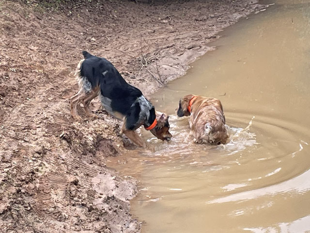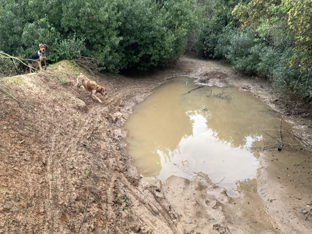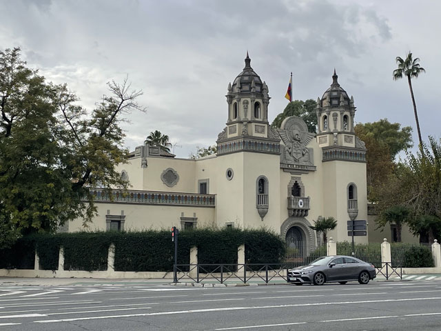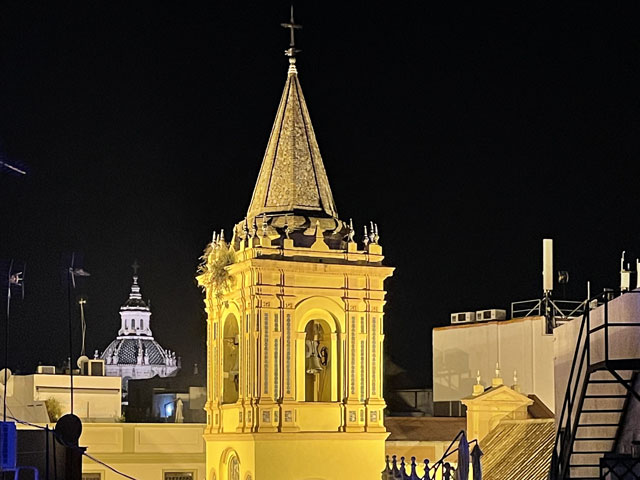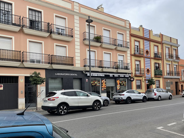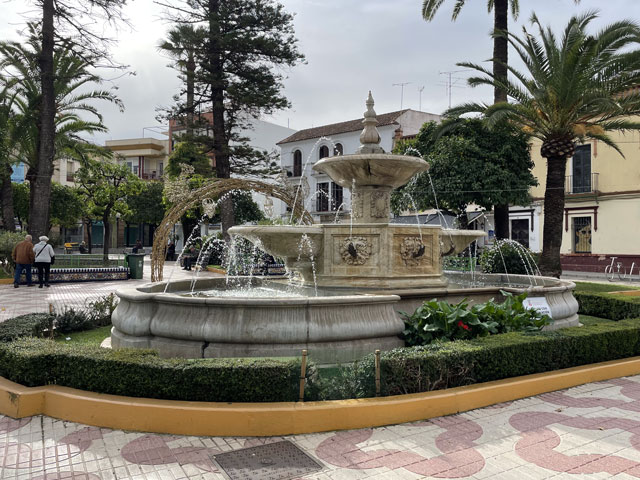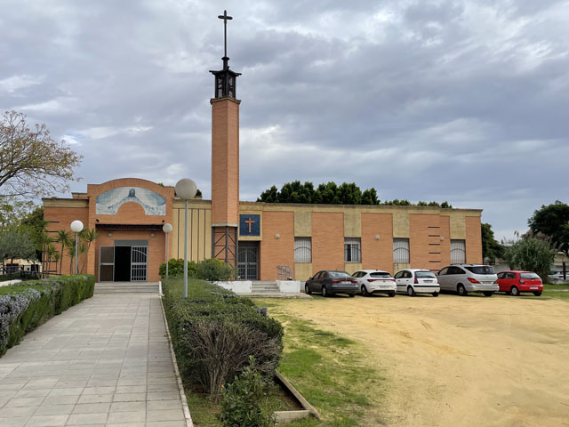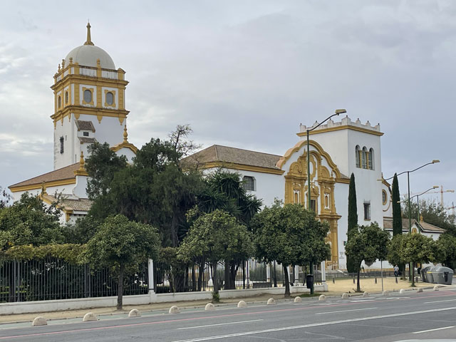 Um vier war die Disko zu ende. Da war leider nicht mehr viel Nacht übrig. Ich hatte mir den Wecker auf um sieben gestellt, weil ich gegen acht loslaufen wollte. Von Utrera nach Sevilla sind es 32 km, die gut zu schaffen sind, wenn man nicht so spät aufbricht. Auf keinen Fall wollte ich wieder hektisch durch die Gegend rennen, sondern den Tag ruhig angehen und Pausen machen, zum Beispiel in Dos Hermanas („Zwei Schwestern“) auf der Hälfte des Weges. Hinter dem Gewerbegebiet im Norden von Utrera bin ich von der Straße auf einen Weg entlang der Bahnlinie gewechselt, auf dem lt. Karte die Via Augusta verläuft. Da stand auch ein Schild mit der Muschel, aber darunter stand „Via Serrana“. Ich dachte erst, da hat sich jemand beim Griff in die Schilderkiste vertan, aber ein Blick auf die Karte belehrte mich, dass die Via Serrana, auf der ich das Stück von La Linea nach San Roque gelaufen bin, in Utrera auf die Via Augusta trifft. Für den gemeinsamen Streckenverlauf bis Sevilla haben sich offenbar Kartenmaler und Schilderkleber nicht auf einen Namen einigen können. Egal, der Weg führte zunächst einige Kilometer zwischen Olivenhainen hindurch, meist beidseitig mit Schilf oder stachligen Sträuchern abgeschirmt. Leider standen da immer mal in voller Wegesbreite Pfützen, die sich nicht trockenen Fußes umrunden ließen. Da, und an Stellen, wo umgestürzte Bäume den Weg versperrten, musste ich mir im Olivenhain eine Umgehung suchen. Die Wegränder waren voller Löcher und überall hoppelten Kaninchen herum, die ich gar nicht wahrgenommen hätte, wenn sie einfach im Gebüsch sitzen geblieben wären, statt hektisch über den Weg zu rennen. Da in den Olivenhainen laufend Schüsse zu hören waren, keimte bei mir der Verdacht, dass da jemand den niedlichen Tierchen nachstellt, die auf dem Essentisch bestenfalls als Chickenwings durchgehen würden. Als dann am Wegesrand ein halbes Dutzend Autos mit Hundeanhängern stand und abgeschossene Schrot-Patronen rumlagen, war mir klar, dass da eine Treibjagd stattfindet. Auf meinem Weg zwischen den als Jagdgebiet markierten Olivenhainen fühlte ich mich sicher, bis bei einer Rast auf einem umgestürzten Baum dicht neben mir Schüsse abgegeben wurden. Da bin ich schnell weiter und nun auch nicht mehr im Olivenhain um die Pfützen herum, sondern munter hindurch. Lieber dreckige Schuhe, als zerschossene. Ich habe sogar überlegt, ob ich wie im Witz bei den „Noplies“ üblich, die Hände hochreiße und laut „no please“ rufe. Zwei Jagdhunde, die auf mich zugelaufen kamen, waren zum Glück nicht auf Großwild abgerichtet und haben nur ein Bad in einer der Pfützen genommen, ohne mich zu beachten. Überlebt! Nach der Überquerung einer Landstraße (A 8029) ging es auf einer Straße, besser auf einem grob asphaltierten Weg, weiter ins noch 8 km entfernt Dos Hermanas. Das heißt, eigentlich wäre die Via Serrana bzw. Augusta ein Stück entlang der Straße und dann parallel zur Bahn verlaufen. Aber man muss es ja nicht übertreiben und jeden Umweg mitmachen. Auf der Straße kamen mir nur ein paar Radfahrer entgegen und ein Abschleppwagen, der ein lustig mit Kabelbindern repariertes Auto abschleppte. Beim Erreichen der ersten Häuser von Dos Hermanas fühlte ich mich wie im tiefsten Slum. Überall lag Dreck herum, die Straße war vollgestellt mit kaputten Autos und auf dem Bürgersteig wurde Wäsche getrocknet und den Gerätschaften zufolge abends gegrillt. Viele Haustüren standen offen und man konnte die Kinder vorm Fernseher rumlungern sehen. Die Frauen standen derweil draußen und quatschten, einige mittags noch im Schlafanzug. Diese Straße zog sich bis ins Stadtzentrum und wurde zum Glück von Querstraße zu Querstraße ansehnlicher. Die nun teils zweistöckigen Häuser wurden ordentlicher, die Autos sahen aus, als wären sie noch fahrbereit, und die Leute hatten richtige Sachen an. Rechts tauchte an der Straße eine moderne, aber sehr einfache Kirche auf, deren Tür weit offen stand. Da hatte gerade ein Gottesdienst begonnen. Ein gutes Dutzend Frauen saß drinnen und erfreulicherweise noch mehr Kinder. Aber außer dem noch recht jungen Pfarrer war kein Mann zu sehen. Ein sicheres Zeichen, dass eine Kneipe in der Nähe ist. So war es dann auch. Der Platz im Stadtzentrum sah ganz ordentlich aus und wurde von der St. Anna-Kirche dominiert, die offen und schon ganz gut gefüllt war, weil es dort um 13 Uhr einen zweiten Sonntagsgottesdienst gab. Prima, da habe ich in der Sakristei jemand angetroffen, der mir einen Stempel geben konnte. Die heilige Anna, Marias Mutter und damit Jesus‘ Oma, ist übrigens die Schutzpatronin der Stadt. Am Kirchturm fand sich eine interessante, sogenannte „Anna Selbdritt“-Darstellung. In einem Relief hatte Anna ihre Tochter Maria auf dem Schoß und diese wiederum Jesus. In der Kirche standen unzählige, teils mit echten Kleidern bekleidete Figuren, darunter aber leider weder Jakobus noch mein verehrter Rochus. Die maximal zweigeschossige Bebauung zog sich durch die ganze Stadt. Erst am nördlichen Stadtrand tauchten ein paar mehrgeschossige Wohnbauten auf. Das hat die Stadt irgendwie sympathisch gemacht. Obwohl es da ein paar vermutlich preiswerte Hotels gab, konnte mich aber nichts dazu bewegen, hier, kurz vor meinem Ziel Sevilla zu nächtigen. Dafür war es ja auch noch viel zu früh. Ich habe stattdessen nochmal bei booking.com die in Sevilla verfügbaren Hostels abgerufen. Da gibt es einige unter 15 €. In einem recht ordentlichen war ich Ende Februar, als ich in Sevilla auf die Via de la Plata nach Santiago gestartet bin. Die war ganz gut, aber ein paar Meter weg vom Zentrum und an der Kreuzung zweier kleiner Straßen mit Kopfsteinpflaster. Das war etwas laut. Darum habe ich dieses Mal ein Hostel gewählt, das zwar etwas teurer ist, aber in einer fahrzeugfreien Gasse nicht weit entfernt von der Kathedrale liegt. Da habe ich gleich für die verbleibenden zwei Nächte gebucht, beide zusammen mit allen Rabatten 