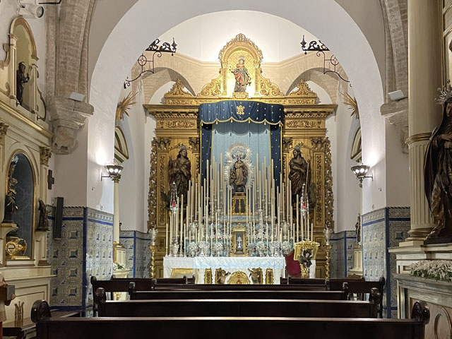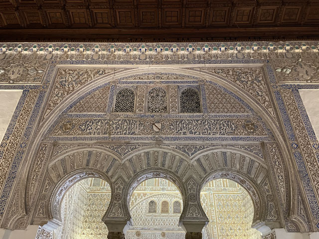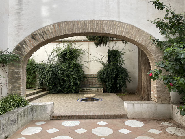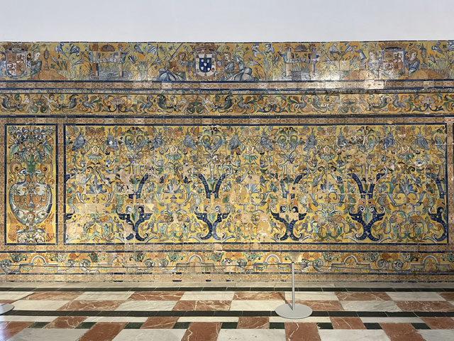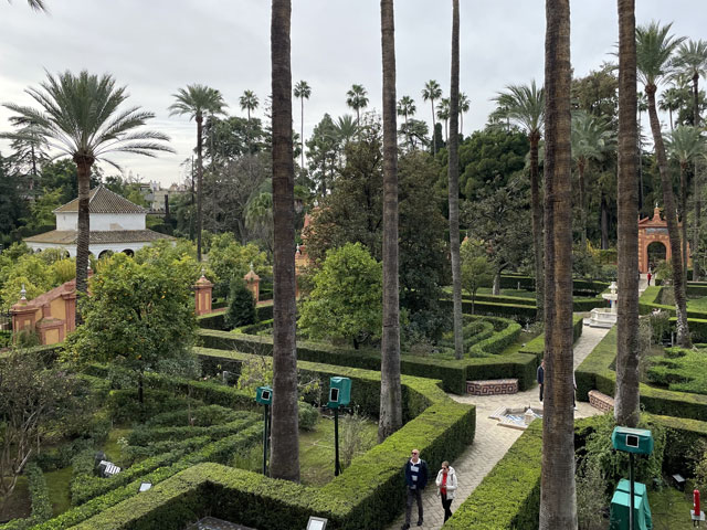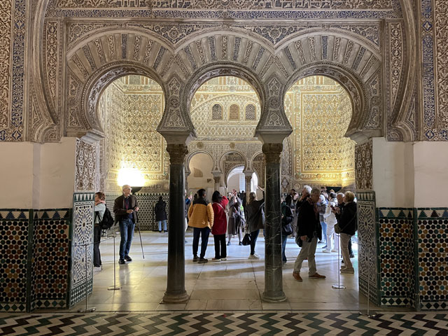 Pünktlich halb elf wurden wir eingelassen und ich war schockiert, wie voll es da schon auf dem Gelände war. Halbstündlich wird etwa 300 Besuchern Einlass gewährt, aber ich vermute, dass die vielen Reise-, Schüler- und Kindergartengruppen da nicht mitzählen. Man konnte gar nicht vermeiden, den Fotofreunden ins Bild zu laufen und musste laufend aufpassen, dass einem kein Selfie-Stick ins Auge sticht. Im Palast gab es viele Räume zu besichtigen, einige sehr arabisch aussehend, andere aus verschiedenen Epochen unseres Kulturkreises, zum Beispiel in einem gotischen Gebäudeteil. Dort hingen riesige Wandteppiche mit Landkarten, Schiffsschlachten und anderen Gemetzeln. Egal zu welchem Baustil gehörig, waren fast alle Räume und Treppenhäuser mindestens mannshoch gefliest, natürlich überwiegend mit reich dekorierten Fliesen. Im Erdgeschoss gab es auch eine richtige Fliesenausstellung zu sehen - die sah schon etwas anders aus, als jene im Baumarkt. Sehenswert waren vor allem die Fliesen mit Figuren drauf oder zum Beispiel ein kompletter Kreuzweg auf Fliesen. In den arabischen Gebäudeteilen waren die reichen Verzierungen rings um die Türen und Fenster und als Abschluss des Fliesensockels sehr beeindruckend. Nicht immer war klar, ab es sich um Schriftzeichen oder einfach nur um Verzierungen handelt. Das Smartphone meinte zwar wiederholt, Schrift erkannt zu haben, aber übersetzten konnte oder wollte es den vermeintlichen Text nicht. Schön anzusehen waren die vielen kleinen Gärten zwischen und hinter den Gebäudeteilen und der sich anschließende, von einer großen Mauer umgebene Park. Da waren hunderte Scheinwerfer, Diskostrahler, Beamer, Lichterketten und Nebelmaschinen installiert. Von Anfang November bis Ende März findet da jeden Abend eine Lichtershow statt (Eintritt 11 €). Das habe ich leider nicht gewusst, sonst wäre ich da gestern bestimmt mal hin. Ich habe fast drei Stunden im Alcazar zugebracht. Hätte ich da noch alles gelesen oder mir im Internet-Audioguide angehört, hätte das noch viel länger gedauert. Nach einem Zwischenstopp in der Goldenen Schwalbe bin ich zum „Torre del Oro“ (Goldener Turm), einem Wachturm aus dem 13. Jahrhundert, der ein kleines Schifffahrtsmuseum beherbergt und von seinem Dach einen schönen Blick über die Altstadt und entlang des „Canal de Alfonso XIII“ bietet. Danach bin ich mal kurz rüber auf die andere Seite des Kanals in das Stadtviertel Los Remedios, wo einer (natürlich aus Fliesen bestehenden) Info-Tafel zufolge u. a. Magellan zu seinen Weltreisen aufgebrochen ist. Nach einem Mittagsschläfchen im Park bin ich dann auf verschlungenen Wegen in mein Hostel, um den Rucksack abzuholen. Den dort am Morgen zurückgelassenen Rest meines löslichen Kaffees hatte noch keiner gebraucht, so dass ich mir vor dem Aufbruch noch einen Kaffee aufbrühen konnte. Das Mädel an der Rezeption hat mich gewähren lassen, denn bei ihr hatte ich „einen Stein im Brett“, weil ich sie vorgestern daran erinnert habe, dass ich noch bezahlen muss. Ihre Software hat wohl ein Problem mit Reservierungen, die erst am Anreisetag erfolgen, so dass ihr das gar nicht aufgefallen wäre. Mit dem wieder auf sein ursprüngliches Gewicht reduzierten Rucksack bin ich dann noch zwei Stunden durch die Stadt gezogen, dieses Mal durch die nördlichen Stadtviertel wie San Roque. Von den interessanten Kirchen am Wegesrand war leider nicht eine einzige offen. Vermutlich kann man nur im Stadtzentrum darauf hoffen. Die gemütlichen Bänke, funktionierende USB-Dosen und saubere Toiletten haben mich bewogen, in der Goldenen Schwalbe auf den Flughafenbus zu warten, der auf der anderen Straßenseite der Straße „Paseo Colon“ vor dem Goldenen Turm hält. Der verkehrt viertelstündlich und braucht etwa 40 Minuten. Mit dem Bus kurz vor acht habe ich noch einen guten Puffer. Um 22.55 Uhr geht mein Flug nach Barcelona, von wo es morgen früh um 7.15 Uhr weiter nach Berlin geht. Das war auch wieder so ein Schnäppchen - beide Teilstrecken zusammen für 59 €. Da nimmt man auch die paar Stunden Wartezeit in Barcelona hin. Dafür hatte ich ja heute noch einen vollen Tag und ich komme nicht irgendwann spät in der Nacht in Berlin an, wenn das Heimkommen kompliziert ist. Das war‘s jetzt mal wieder mit der Berichterstattung. Ich hoffe es hat nicht gelangweilt und der/die eine oder andere hat Lust bekommen, sich mal auf diesem Weg zu gehen. Auch wenn das manchmal etwas schlimm klang, war es ein schöner, interessanter und recht gut ausgeschilderter Weg. Dass man bzgl. Herbergen nicht auf die gleiche Infrastruktur trifft wie auf den häufiger begangenen Wegen, war abzusehen. Das hat dadurch ein paar Groschen mehr gekostet, als üblich, dafür habe ich nicht ein einziges Mal meinen Schlafsack benutzt, weil es stets Bettwäsche gab. Den Regenponcho habe ich zum Glück genauso wenig gebraucht wie mein langärmliges Shirt. Eigentlich hätte ich mit einem Tütchen Sachen reisen können. Wanderpulli und Anorak habe ich auch nicht oft benötigt, meist nur abends nach Sonnenuntergang und dann auch nur eins von beidem. Nun werde ich frühestens im März wieder auf einen Camino gehen, hier oder im Süden Portugals. Wer da wieder dabei sein möchte, möge sich bitte melden. |