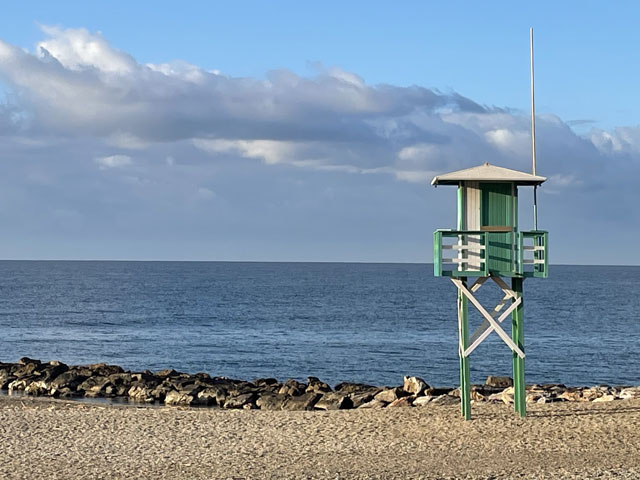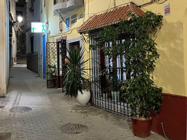 Die Nacht in Calahonda war einigermaßen schlimm. Das Bett war so weich, dass ich stets tief eingesunken bin, was nicht in jeder Körper-haltung schmerzfrei ist. Es war wohl schon ziemlich spät, bis ich endlich für wenige Stunden eingeschlafen bin. Da ich zeitig wieder wach war, bin ich noch im Dunkeln, etwa um halb acht, losgelaufen. Da stand der Vollmond noch knapp über den Bergen, was eine reine Pracht war. Und so wie der langsam vor mir verschwand, kam hinter mir die Sonne hoch.
