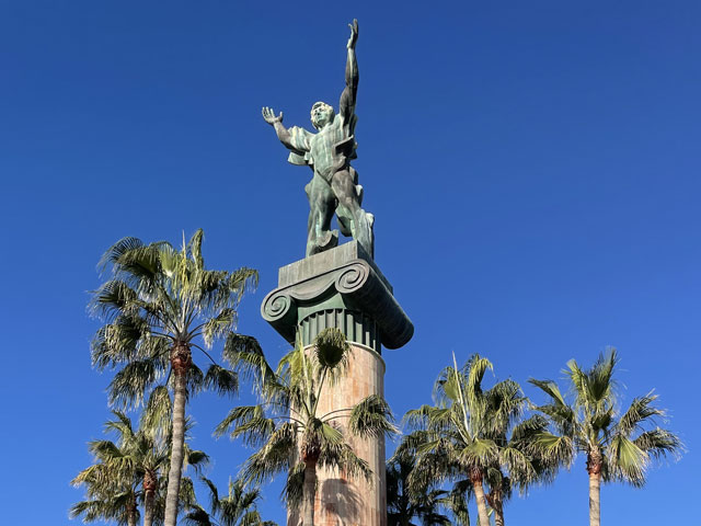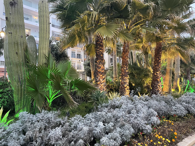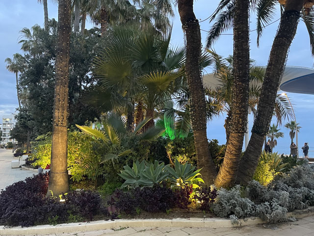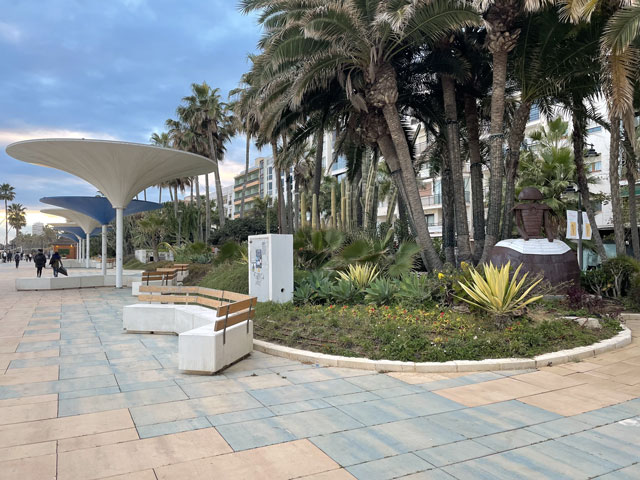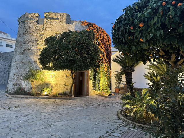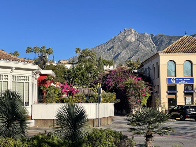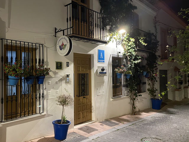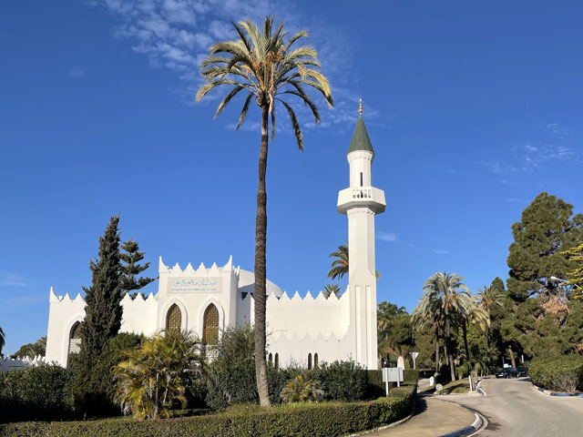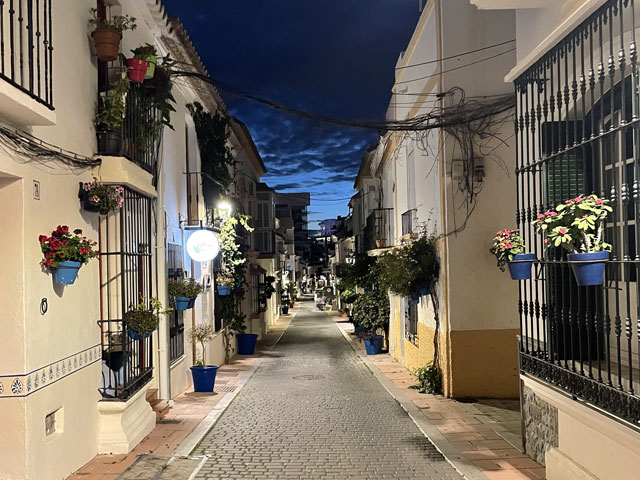 Ich habe etwas länger geschlafen, gut gefrühstückt und beim Einpacken getrödelt. So war es schon um neun, als ich losgezogen bin. Ich bin, wie vom Routenplaner vorgeschlagen, zur N-340 (hier „Boulevard del Príncipe Alfonso de Hohenlohe“) gelaufen, die sich quer durch Marbella zieht, und auf dieser aus der Stadt raus. Üblicherweise ist es ja so, dass es beidseits einer solchen Straße immer unansehnlicher wird, je weiter man aus der Stadt rauskommt. Hier ist das umgekehrt. Da werden die Hotels, Häuser, Geschäfte und Gaststätten immer nobler und man ist bald umgeben von lauter Sternen (vier bis fünf je Hotel), Designerläden und Maklerbüros. Vielleicht ist das dem Prinz Alfonso von Hohenlohe zu verdanken, den ich erst für einen tapferen Krieger gehalten habe, bis mich Wikipedia aufgeklärt hat, dass der eher mit Rolf Eden zu vergleichen ist. Zwischendurch stand da etwas erhöht eine weithin weiß strahlende Moschee. Wohl wissend, dass in der kein Sonntagsgottesdienst ist, bin ich den Hang hochgeklettert, um sie mir wenigstens von außen näher anzusehen. Die schaute nicht aus, als wär‘ sie für die marokkanischen Hafenarbeiter gebaut worden. An der „Calle Coral Beach“, die beidseits mit exklusiven Apartment-häusern bebaut ist, bin ich runter zum Strand und dort dann weiter in Richtung Westen gelaufen. Einem entsprechenden Hinweis folgend, habe ich einen Abstecher zu einem ausgegrabenen und nun unter einem Hallendach präsentierten römischen Haus aus dem 2. Jahrhundert gemacht. Da waren zwar nur die Fußböden und ein paar kleine Mauerreste zu sehen, aber die Dekorationen auf den Mosaikfußböden waren interessant, weil es sich da nicht um Kriegerköpfe, sondern um Lebensmittel und Haushaltsgeräte handelte. Außerdem war es unter dem Schatten spendenden Hallendach angenehm kühl, was ich gleich für eine kleine Pause genutzt habe. Bänke gibt es ja an den Strandpromenaden viele, aber die stehen alle in der prallen Sonne und sind damit für mich nicht einladend. Weiter ging es auf der Promenade und auf einem „Holzweg“ über den Rio Verde und vorbei an einem Yachthafen. Auf der Karte war gar nicht zu erkennen, dass es da richtig städtisch zugeht, inklusive einem riesigen unterirdischen Parkhaus. Die Hauptstraße ist da, warum auch immer, nach Julio Iglesias benannt, obwohl der noch gar nicht richtig tot ist. Als dann hinter San Pedro Alcántara der befestigte Weg aufhörte, bin ich in die Urbanisation „Guadalmina Baja“ abgebogen, wo sich teure Villen hinter hohen Mauern verbergen. Hier ist das Geld zuhause. Und die Straßen sind so angelegt, dass jeder Durchgangsverkehr ausgeschlossen ist. Selbst als Fußgänger hatte ich Mühe, auf die N-340 zu kommen. Inzwischen gelüstete mich nämlich nach etwas zu Essen und an der Schnellstraße habe ich mir ein Restaurant erhofft, wo das Essen wieder schnell und preiswert von statten geht. Sowas gab es dort auch, sogar reichlich - aber auf der anderen Straßenseite. Ich habe mich lange geweigert, deswegen auf einer der Brücken die Straße zu queren und bis zu einem gesehenen Restaurant zurückzulaufen. Als dann aber mal eine Brücke direkt zu einem Hongkong-Chinesen führte, bin ich rüber und habe da wieder was Leckeres bekommen, diesmal gebratene Nudeln nach „Singapur“-Art. Die Kellnerin hat mich gewarnt, dass es scharf sei, aber es ging und war wie erwartet sehr schmackhaft. In Saladillo Benamara bin ich wieder zurück ans Wasser und ab da immer dicht am Strand in Richtung Estepona gelaufen. Der Affenfelsen von Gibraltar war jetzt richtig gut zu erkennen, am Vormittag war er gar nicht auszumachen und auch abends war er nicht besser zu sehen, obwohl ich dann ja ein Stückchen näher dran war. Außerdem war später am Tag die Perspektive so, dass man die Straße von Gibraltar gar nicht mehr erkennen konnte, weil zwischen dem Affenfelsen und seinem afrikanischen Pendant die marokkanische Küste zu sehen war. Nun hätte man rechts vom Felsen die Durchfahrt vermutet, aber da ist La Línea de la Conceptión. Der Ort liegt nur knapp über dem Meeresspiegel und hat keine richtig hohen Häuser, weshalb er auf diese Entfernung hinterm Horizont verschwindet. Die Erde ist halt doch keine Scheibe. Herakles hat das noch anders gesehen und über der Straße von Gibraltar mit dem Schriftzug „Nicht mehr weiter“ das Ende der Welt markiert. Auf Lateinisch heißt das „Non plus ultra“, das hat man schon mal gehört. Die Spanier haben dann nach der Entdeckung Amerikas diesen Spruch unter Weglassung des „Non“ zusammen mit den „Säulen des Herakles“ (wie die Berge beidseits der Straße von Gibraltar genannt werden) in ihr Wappen aufgenommen und das findet sich nun auf deren Fahne - und so auch auf den Fußball-Trikots. Das habe ich alles bei Wikipedia gelernt. In Estepona angekommen, war genau die Zeit des Sonnenuntergangs und ich habe in der Herberge Bescheid gesagt, dass ich doch nicht um sechs, sondern eine Stunde später da sein werde, weil ich mir noch vom Strand aus den Sonnenuntergang anschauen will. Aber der ist letztlich ausgefallen. Ich hatte gehofft, ein paar spektakuläre Binder vom Affenfelsen im Licht der untergehenden Sonne machen zu können, aber statt diesem Licht kam die Dunkelheit. Als Trost konnte ich noch ein paar Bilder von den abends beleuchteten Palmen am Rand der Strandpromenade machen. Dabei muss man sich immer vor Augen halten, wie lang diese Promenaden sind. Die reichen von einem Stadtrand zum andern und bei dieser gibt es auf der ganzen Länge Sitzgelegenheiten mit pilzförmigen Schattenspendern darüber (die ich mir am Tage gewünscht hätte), Hochbeete mit Palmen, Kakteen etc., dazwischen Spielplätze und Restaurants. Einfach toll. Die Gassen, die ich auf dem Weg zur Herberge gesehen habe, waren auch alle ganz nett dekoriert und das kleine Castillo mittendrin hat man eindrucksvoll beleuchtet. Meine Herberge „Veranera Hostel“ ist die beste Unterkunft, die ich auf dieser Reise hatte. Hi
