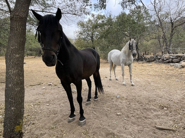 Heute waren es nur etwas über 20 km, weshalb keine Eile angesagt war und wir auch erst nach acht nacheinander aufgebrochen sind. Die ersten zehn Kilometer bis Mataelpino ging es auf einem planierten Waldweg, auf dem auch immer mal Bauern oder Pferdebesitzer mit ihren Autos fahren, denn hier haben einige Pferdekoppeln und Viehweiden, die sich aber in der weiten Landschaft fast verlieren. Witzig war ein Brunnen mit Wasserbecken, an dem Schilder angebracht waren, dass Hunde dort nicht trinken dürfen. Da man da aber vor Kuhfladen gar nicht treten konnte, sind andere Tiere von dem Verbot offenbar ausgeschlossen.