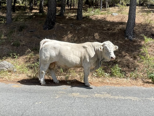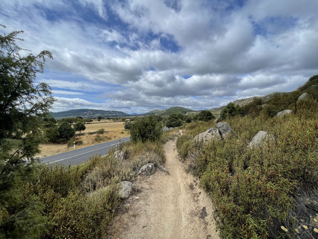 Hinter Mataelpino wurde der Weg dann wieder ziemlich übel. Es ging auf schmalen, oft zerfurchten Wegen zwischen den Felsen auf und ab und dann ein Stück parallel zur Landstraße nach Navacerrada. Das ist offenbar ein sehr touristischer Ort, denn um den kleinen Kreisverkehr mitten im Ort gab es allein mindestens zwölf Gaststätten, von denen bestimmt acht geöffnet waren. Ein paar Meter weiter kam die nächste Kreuzung mit fast genau so vielen Gaststätten. Und auch in allen Seitenstraßen standen Stühle am Straßenrand.