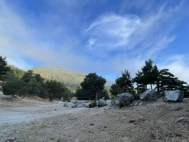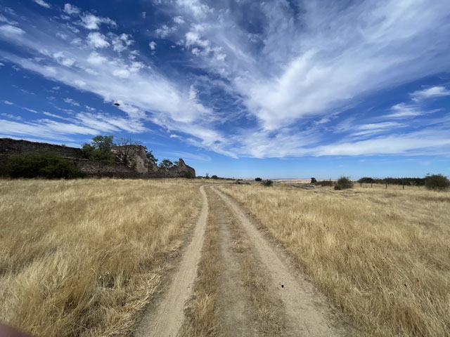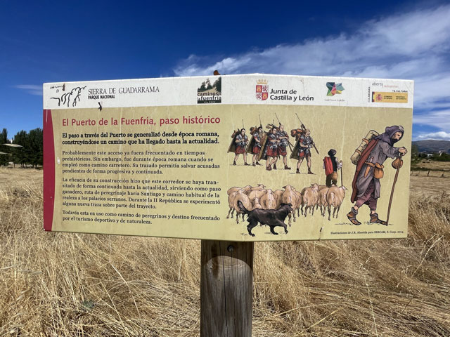 Egal, inzwischen war es hell und ich habe den Rest bis hoch auf den Pass gut allein hinbekommen. Während ich da noch mühevoll Schritt für Schritt hochstapfte, schrieb mir Koo, dass er schon auf dem Abstieg ist. Ich habe mir, oben angekommen, erstmal auf die Schulter geklopft. Diese halbe Etappe lag mir schwer im Magen, seitdem ich mich mit dem Camino de Madrid beschäftigt habe. Dass ich die geschafft habe, hat mich froh und stolz gemacht. Und nun hatte ich gar keine Eile, nach Segovia bzw. noch ein Stück weiter in die Herberge zu kommen. Das ist eine 40 Betten-Herberge und außer uns Vieren wird da kaum einer sein.
