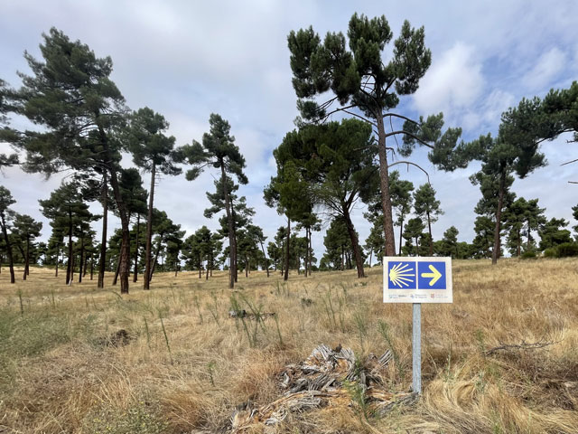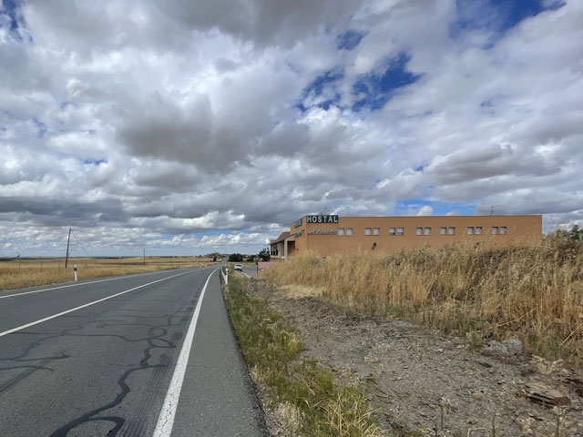 In Pinilla Ambroz, dem letzten Ort auf der Strecke, konnte man zwischen dem offiziellen Jakobsweg und der ein paar hundert Meter kürzeren Variante entlang der Straße wählen. Eigentlich wollte ich den offiziellen Weg nehmen, aber zum Glück habe ich auf der Karte nach dem Hostel „Avanto“ gesucht und gesehen, dass das südlich von Santa María la Real die Nieva an der Fernstraße liegt. Da kam eigentlich nur die alternative Route in Frage. Andernfalls hätte ich von Santa María ein ganzes Stück wieder nach Süden laufen müssen.