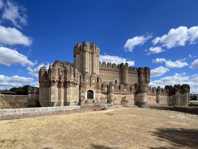Auf Coca habe ich mich schon lange gefreut, weil ich die tolle Burg in einigen Videos gesehen habe. Als ich gestern auf der Website von Coca gelesen habe, dass die eigentlich jeden Tag, also auch montags offen ist, war ich ganz euphorisch, aber dann habe ich gelesen, dass man sich 48 Stunden vorher anmelden muss. Aber von außen wollte ich sie mindestens bestaunen. Zeit dafür war genug, denn als ich um drei im Ort ankam, waren alle Geschäfte zu und Leute, die ich gefragt hatte, sagten mir, dass der Supermarkt erst um fünf wieder öffnet. Also hieß es, sich zwei Stunden die Zeit zu vertreiben, denn ich musste unbedingt hier einkaufen, weil in dem Dorf mit der Herberge keine Möglichkeit dafür besteht.