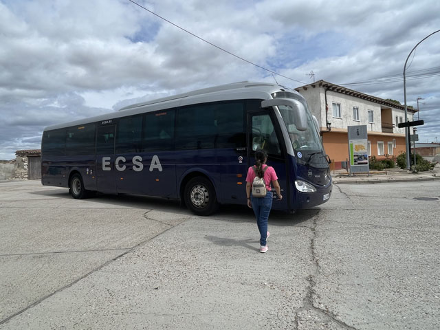 Um acht haben wir Vier uns wie verabredet auf dem schaurigen Busbahnhof getroffen und sind zusammen zurück nach Alcazarén gefahren. Das war wieder eine schöne, einstündige Fahrt, bei der auch ein paar kleine Dörfer mit Bedarfshaltestellen abgeklappert wurden.