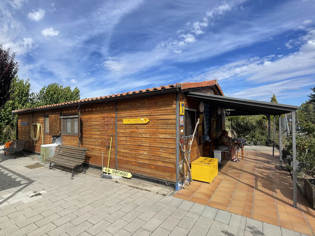 Kurz vor dem Fluss biegt links eine Wohngebietsstraß ab, an der sich ein Gartengrundstück mit einem unscheinbaren Holzhaus befindet. Das ist die kommunale Herberge mit zwei Vierbettzimmern, einer großen Küche und einem gemütlichen Aufenthaltsraum. Alles ganz ordentlich und sauber, wenn man mal vom Geschirr im Schrank absieht.