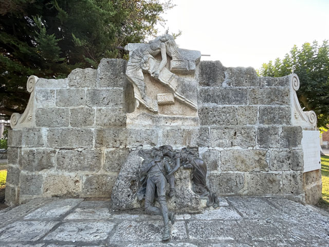 Ein Stück weiter kam schon die nächste Kirche, in der sich jetzt ein Museum befindet. Davor ist ein Denkmal zur Erinnerung an jene Kastilier und Galicier, die sich 1808 leider erfolglos Napoleons Truppen entgegengestellt haben, weil sie niemand aus seiner Sippschaft als König haben wollten. Aber es wurde dann doch ein Bonaparte. Napoleons Familie war so groß, dass die Länder Europas kaum gereicht haben, um jedem Verwandten eins zu geben.