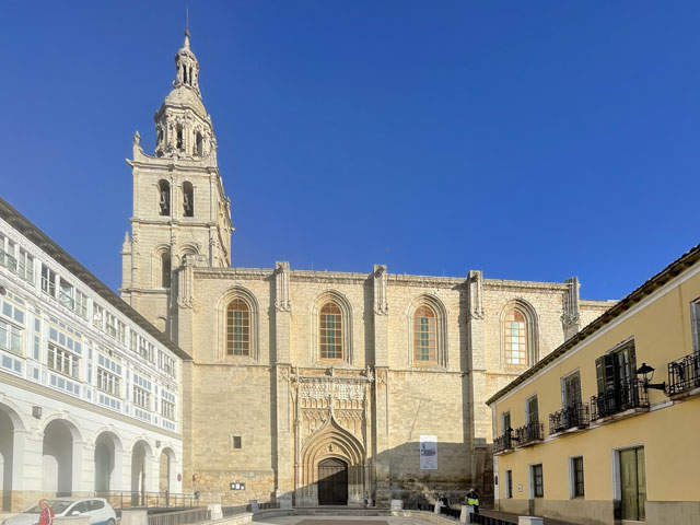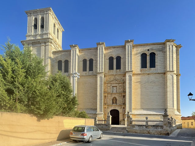 Um halb neun war ich bereits in Medina de Rioseco, da wo die anderen am Abend nächtigen wollten. Die zu einem Kloster gehörende, aber in einem separaten Gebäude befindliche Herberge ist gleich am Anfang des Ortes hinter einer hohen Mauer. In die trutzige Klosterkirche konnte man leider nicht reinschauen.