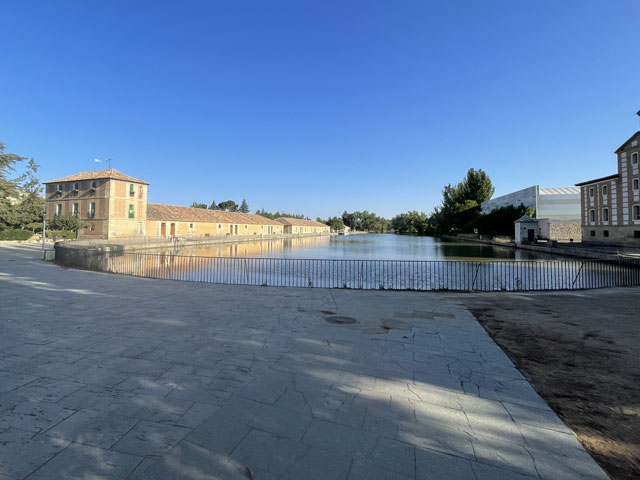 In Medina de Rioseco endet ein Arm des Canal de Castilla, der Ende des 18. / Anfang des 19. Jahrhunderts zur Erleichterung des Getreidetransports und zur Bewässerung der Felder gebaut wurde. Ein weiterer Arm führt nach Valladolid. Die treffen bei Palencia aufeinander, von wo ein dritter Arm nach Norden, bis Alar del Rey führt. Dieser wird zwischen Boadilla de Camino und Fromista vom Camino Francés begleitet. Ich erinnere mich noch gut an das angenehme Laufen am Kanal, an die Pumpen, welche das Wasser in die über die Felder führenden Rinnen pumpen und an die Reste der gewaltigen Schleusentreppe bei Fromista. Leider sind die Schleusen wohl sämtlichst nicht mehr intakt, weshalb der mit 8 Meter Breite recht stattliche Kanal leider nicht richtig touristisch genutzt werden kann. Nur auf kurzen Stücken fahren kleine Ausflugsschiffe, so auch in Medina de Rioseco, wo es am Kanalende noch gut erhaltene Reste der Verladeplätze zu sehen gibt.