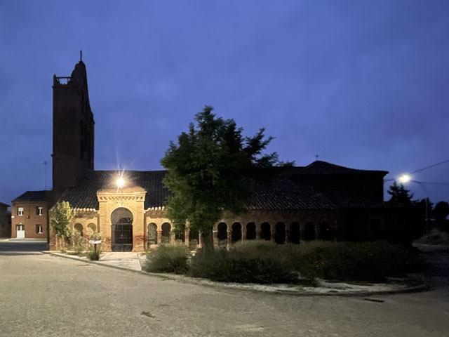 Ich bin in der Herberge von Villada allein geblieben und habe hervorragend geschlafen - vermutlich besser als die im Wohnwagen auf dem angrenzenden Caravan-Stellplatz. Es hat nämlich ordentlich Krach gemacht, als ich beim Losgehen um sieben wie vereinbart den blechernen Rollladen vor der Herbergstür runtergezogen habe.