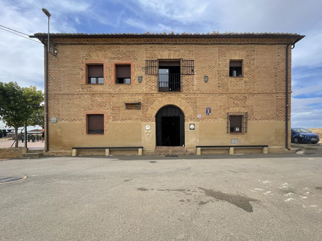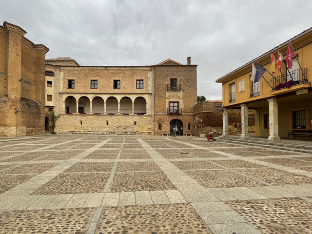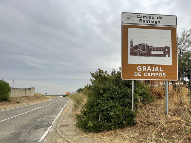 Kurz nach neun war ich schon in Grajal de Campos, bis wo ich gestern bei anderen Temperaturen gern noch gelaufen wäre. Da gibt es nämlich eine Herberge im Kerker des Grafen von Grajal. Der hatte am Plaza Mayor einen sehr ansehnlichen Palacio, an dessen Seite sich jetzt der Eingang zur kommunalen Herberge befindet. Dem Dreck und den Bechern vor der Tür zufolge, war die auch in der letzten Nacht belegt. Ein Gemeindearbeiter war gerade dabei, auf dem Platz Ordnung zu schaffen. Schließlich steht da auch das Rathaus.