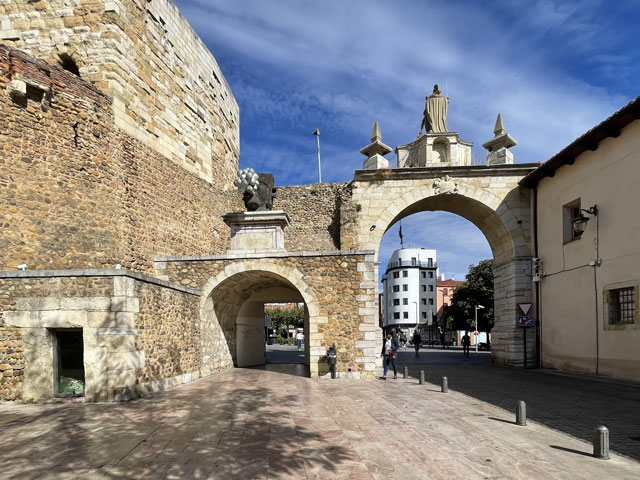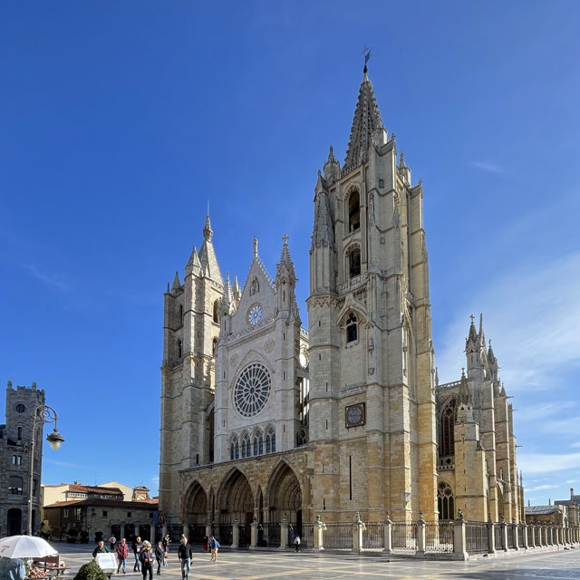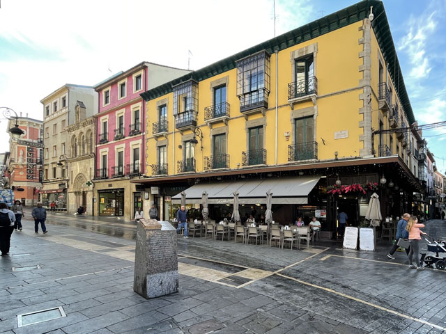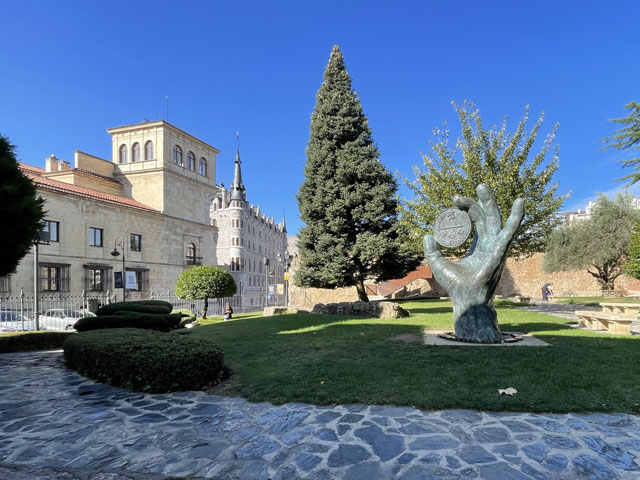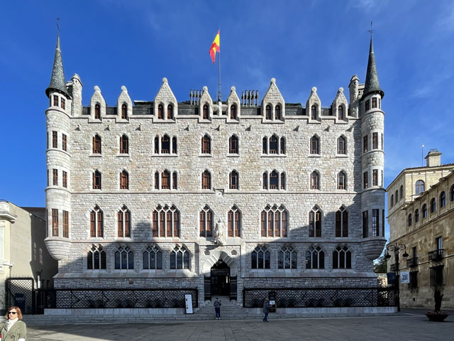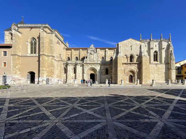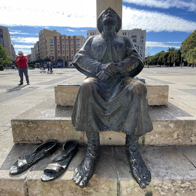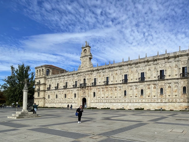 Der Weg durch Leon führte wieder über den Plaza de San Marcos, der auf einer Seite von der prächtigen Fassade einer früheren Pilgerherberge flankiert wird, die jetzt ein 5-Sterne-Hotel (Parador) ist. Von dem, was man da für ein Zimmer bezahlt, kann ich bestimmt zwei Wochen in neuzeitlichen Herbergen unterkommen.
