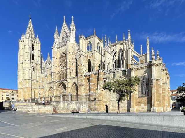 Um halb sieben bin ich aufgebrochen und um neun war ich bereits in León. Allerdings am Stadtrand und das heißt, es ist noch ein ganzes Stück bis ins Zentrum zu laufen. Vor drei Jahren habe ich gleich am Stadtrand in der an sich sehr guten Herberge „Tomas de Canterbury“ eingecheckt und mich dann getückt, dass ich zur Stadtbesichtigung so weit laufen musste und natürlich spät abends auch das ganze Stück zurück.