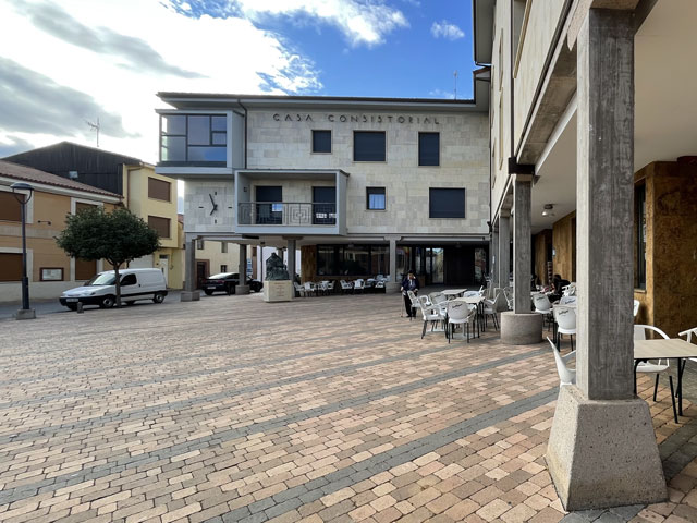 Ich bin also meinem Plan treu geblieben und meinem Tagesziel Villadangos del Páramo entgegengestrebt. An eine Kirche in Valverde de la Virgen konnte ich mich noch gut erinnern. In dem hier typischen, nur aus einem Giebel mit Öffnungen für die Glocken bestehenden Turm sind unzählige Storchennester. Die waren damals alle besetzt und gaben ein gutes Fotomotiv ab. Heute waren sie alle leer. Vermutlich sind die Störche gerade alle in Deutschland Frösche picken. Die nette kleine Bar gegenüber, in der es die Bocadillos ganz säuberlich in Folie verpackt gab, hat leider zugemacht.