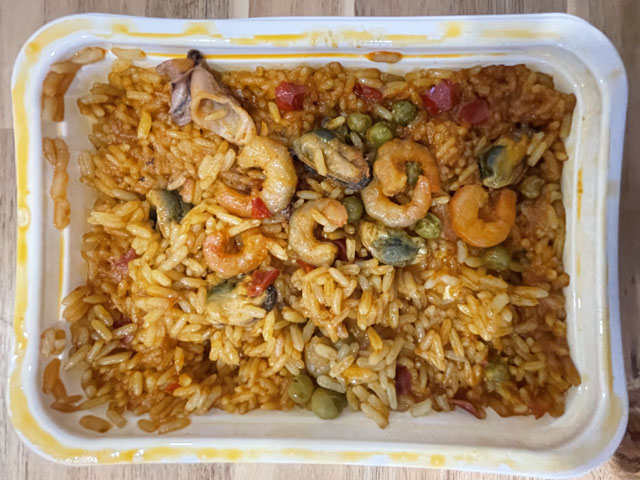 Nach meiner Ankunft und einem kurzen Nickerchen bin ich vorhin in den schon bekannten Dorfkonsum gelaufen und habe mir für heute Abend und morgen für den Weg was zu trinken geholt. Essen schleppe ich ja schon seit zwei Tagen mit mir rum. Es hätte mich zwar gereizt, auf einem der Ceranfelder mal ein paar ordentliche Rühreier zu machen, aber ich wollte auch mal mein Rucksackvolumen reduzieren, weshalb es Instantsuppe aus dem Becher und Meeresfrüchte-Paella aus der Mikrowelle gab.