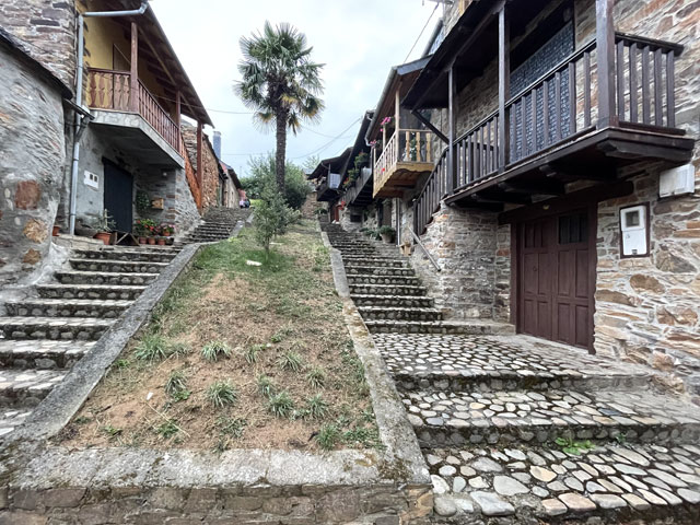 Zwischendurch gab es mal ein ganz nettes Dorf, Riego de Ambrós, das auch mit vielen schönen, aber auch halb verfallenen Häusern an der Dorfstraße aufwarten kann und reichlich Herbergen und Gaststätten zu bieten hat.