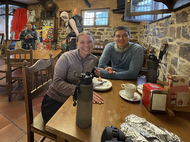 Bei mir am Tisch saßen die beiden jungen, frisch verheirateten Amerikaner aus Tennessee, Jane (21) und Jack (24), die gerade reinkamen, als ich mich gesetzt hatte. Die haben eine andere Herberge genommen, in der aber keine Gaststätte ist. Wir haben viel geschwatzt und hatten so einen schönen Abend. Das ist ein wirklich sehr sympathisches Paar.