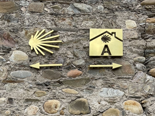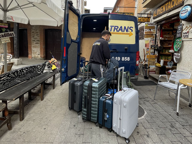 An einer Stelle der engen Straße war für ein paar Minuten kein Weiterkommen, weil dort ein Transporter von „Jaco-Trans“ stand, der in einer Herberge die Gepäckstücke abholte, welche die Light-Pilger gern ins nächste Quartier gebracht haben wollten. Ich dachte, ich sehe nicht richtig. Da waren nicht nur kleine Rollkoffer dabei, sondern auch richtig große, mit denen eine ganze Familie zum Wintersport fahren könnte. Wahnsinn!