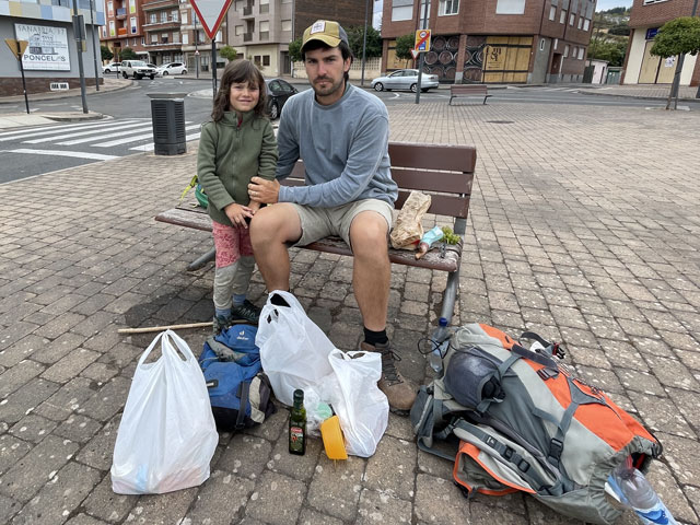 Eine schöne neue Bekanntschaft habe ich auch gemacht. Am Ortseingang von Ponferrada habe ich auf einer Bank vor dem kleinen Supermarkt einen in Leipzig lebenden Engländer kennen gelernt, der mit seinem sechsjährigen Sohn Trajan (wie der römische Kaiser) auf dem Jakobsweg unterwegs ist - von León nach Santiago, das ist mehr als ein Drittel des klassischen Weges. Sie haben 12 km am Tag geplant, aber auch schon 17 km geschafft. Bis zum Monatsende haben die noch Zeit und es sieht sehr danach aus, dass sie es bis dahin nach Santiago schaffen. Wie ich die Beiden beneide! Für Trajan, der mir gleich am nächsten Geländer seine Kletterkünste vorgeführt hat, ist das bestimmt (wie für den Vater) ein ewig in Erinnerung bleibendes Erlebnis.