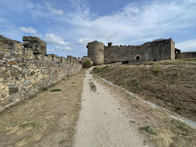 Hinter Molinaseca ging es ein ganzes Stück auf einem breiten Fußweg neben der Straße. Da konnte ich schon mal auf dem Smartphone schauen, wo ich heute und morgen unterkommen kann. Da abzusehen war, dass ich gegen Mittag in Ponferrada bin, wollte ich eigentlich durchstarten und noch eine halbe Etappe bis Villavieja laufen. Bei der dortigen Herberge ist im Pilgerführer vermerkt, dass man sich vorher anmelden muss. Auf „gut Glück“ dorthin zu laufen ist auch nicht klug, denn die Herberge liegt ein Stück ab vom Weg auf dem Berg und man wird darauf hingewiesen, dass man sich Essen und Trinken mitbringen muss, weil es dort nichts gibt. Also habe ich da eine SMS und vorsichtshalber auch noch eine Email hingeschickt, aber bis zum Mittag keine Antwort bekommen. Beim Anrufen kam nur eine automatische Ansage.