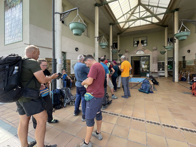 Etwas schockiert war ich allerdings, als bei meiner Ankunft kurz nach zwei eine Schlange an der Rezeption stand. Das lag aber daran, dass jene der drei Hospitaleras, welche die Daten vom Ausweis in den Computer übertragen hat und damit das Nadelöhr war, auch noch jeden einzeln fragte, ob er schon in der Burg war, ob er wissen will, wo der Supermarkt ist usw. Und natürlich ist sie auf jede Frage und jedes Problem sehr detailliert eingegangen. Das hätten sicher auch die anderen beiden Damen fragen und erklären können, aber sowas ist hier Chefsache. Irgendwann war ich dann auch an der Reihe. Auf die Bitte bezüglich eines „unteren“ Bettes gab es Getuschel mit der vierten, für die Bettenzuteilung zuständigen Hospitalera, und schon hatte ich ein solches in einem noch leeren 4-Bett-Zimmer. Erst in der Nacht um halb elf hat man mir da noch zwei Spanier einquartiert, für die wahrscheinlich das Zimmer reserviert war - obwohl angeblich in kommunalen und kirchlichen Herbergen keine Reservierungen möglich sind.