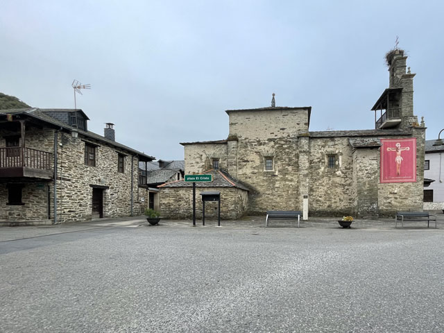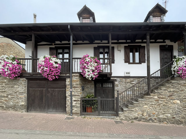 Auf der Straße ging es dann nach Borrenes hinein, wo alles verschlafen war. Auf dem Weg dorthin bin ich von einem anderen Pilger, dem einzigen, den ich zu sehen bekommen habe, eingeholt worden. Es ist wieder mal ein Italiener, Marco (69) aus der Nähe von Florenz. Er hat zuletzt in der Verwaltung eines Krankenhauses gearbeitet und ist jetzt berentet. Er hat Frau, Sohn, drei Enkeltöchter und etwa so viele Caminos wie ich hinter sich. Er spricht zwar noch schlechter Englisch als ich, kann sich aber als Italiener hier ganz gut verständigen. Die Sprachen sind wohl ziemlich ähnlich.