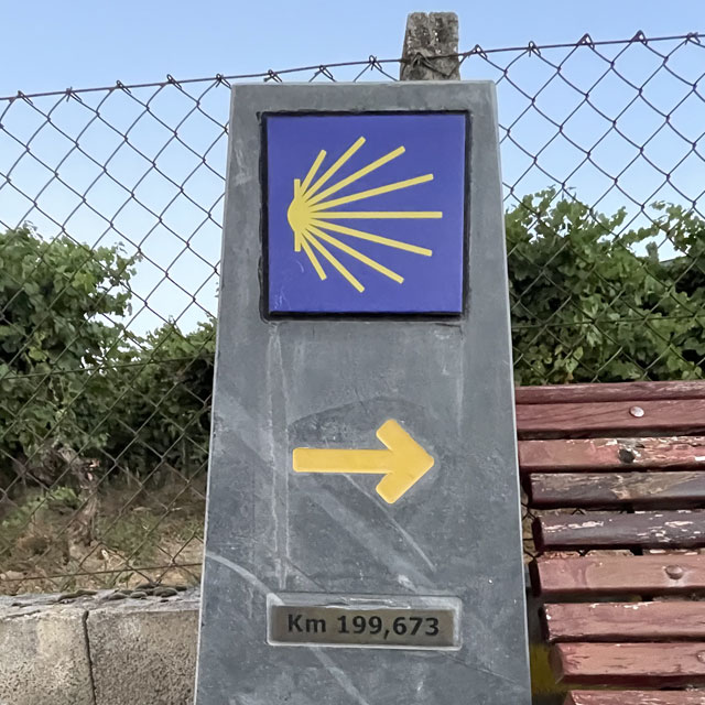 Um acht war ich schon in A Rúa und ein paar Minuten später nahe der dortigen Herberge, in der Marco abgestiegen ist. Bis hier hätte ich gestern laufen müssen, wenn sich die Herbergstür in Vilamartín nicht auf fast wundersame Weise geöffnet hätte. Was heute früh ausgeruht und frisch ein Katzensprung war, wäre gestern Abend eine Tortur gewesen. In A Rúa fand sich dann auch der erste Kilometerstein mit weniger als 200 Kilometern bis Santiago. Das nenne ich einen Lichtblick!