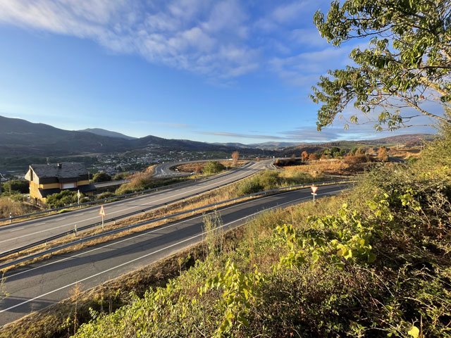 An einer Stelle sollte man durch einen abgebrannten Wald, in dem kaum noch Wege erkennbar sind, runter zu einem Dorf, das außer einem Bahnhof (Montefurado) nichts zu bieten hat, und dann natürlich wieder hoch von 300 auf 400 Meter. Hier bin ich ganz stur auf der Straße geblieben und deren weiten Windungen in die Seitentäler gefolgt. Das war bestimmt viel länger, aber weniger anstrengend als der vorgeschlagene Weg.