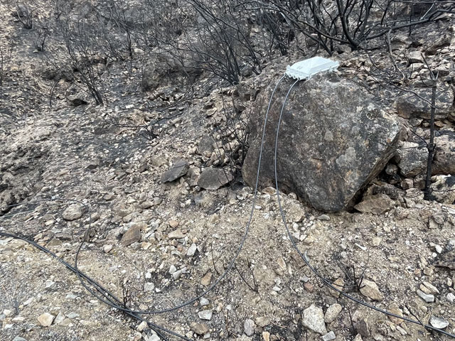 In einem auch gerade so von den Flammen verschont gebliebenen Dorf mit einer Handvoll bewohnbarer Häuser hat eine Dame einen kleinen Verkaufsstand für die vorbeiziehenden Pilger aufgebaut, an dem man sich mittels Wasserkocher einen Kaffee oder Tee zubereiten konnte. Außerdem hatte sie verschiedene Saftpäckchen im Angebot. Kaffee hatte ich zum Frühstück schon viel zu viel getrunken und die süßen Säfte waren nichts für mich. Kalte Limos oder gar ein Bier hatte sie leider nicht zu bieten. Auf meine Frage nach einer Bar oder einem Kaufmannsladen habe ich die wohl schrecklichste Besonderheit dieses Tals erfahren und später erleben müssen: Bars und Geschäfte gibt es erst am Ziel in Quiroga - also 26,5 km strukturelle Wüste! Aber immerhin hat man in den wenigen Wochen seit den Bränden den Leuten neue Telefonleitungen gelegt, wenn auch nur sehr provisorisch: Die neuen Kabel liegen erstmal nur im Straßengraben, denn die Masten sind meist mit verbrannt und es wird wohl lange dauern, bis überall neue gesetzt sind.