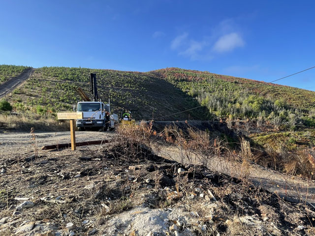 Auf meiner Seite des Tals gab es jede Menge Brandschäden jüngeren Datums. Hier waren gerade Arbeiter dabei, neue Telefonmasten zu setzen und die provisorisch neben der Straße liegenden neuen Leitungen daran zu befestigen. Auf der gegenüber liegenden Seite des Tals waren die Hänge auch fast vollständig abgebrannt, aber vermutlich nicht in diesem Jahr, sondern früher, denn da waren schon alle verbrannten Bäume gefällt und der Hang beräumt. Geradezu waren Bergkuppen zu sehen, die mit regelmäßig angeordneten kleinen Bäumen bestückt sind. Das war sicher auch eine Brandfläche, die inzwischen rekultiviert wurde. Die Leute sind es hier bestimmt längst gewöhnt, dass es immer mal brennt und wissen damit umzugehen. Trotzdem möchte ich nicht gern in einem der schönen Häuser unten im Tal wohnen. Die sind zwar alle von üppigem Grün umgeben, aber weit weg waren die Flammen jetzt bzw. in den Vorjahren nicht.