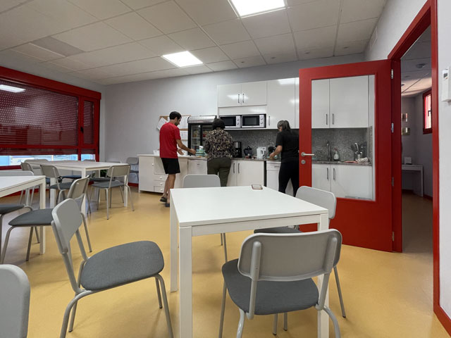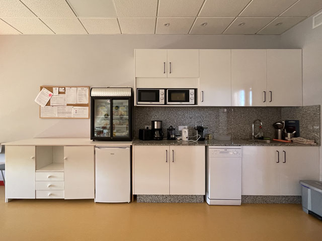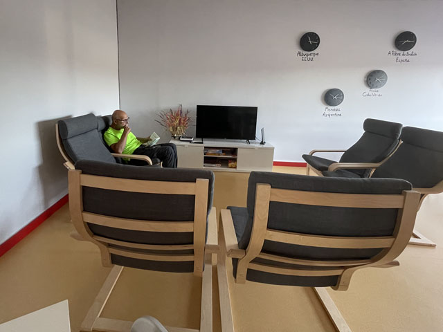 Die kommunale Herberge in A Proba ist zwar mit 17,50 € ein ganzes Stück teurer als der Durchschnitt, dafür habe ich hier aber auch noch keinen Mangel gefunden. Alles ist sehr neu und sauber. Es gibt zwei Schlafsäle mit je 18 Betten. Da wir hier nur zu fünft sind, konnten wir uns gut in einem Schlafsaal verteilen: Marco; ein Spanier, der mich vor ein paar Tagen überholt hat; die beiden Spanierinnen, die ich gestern getroffen habe; und ich. Der Speisesaal würde auch bei voller Belegung für alle reichen und hat zudem eine gemütliche Sitzecke mit Fernseher. Die Küchenzeile hat zwei Mikrowellen, Kühlschrank, Kaffeemaschine, Wasserkocher, Toaster usw. sowie ausreichend Geschirr und Besteck. Alles sehr ordentlich und sauber. Es gibt mehrere Waschmaschinen, die man für einen schmalen Taler benutzen kann und im Garten sind Wäscheleinen - und Sitzbänke, falls man gleich auf das Trocknen der Wäsche warten will.
