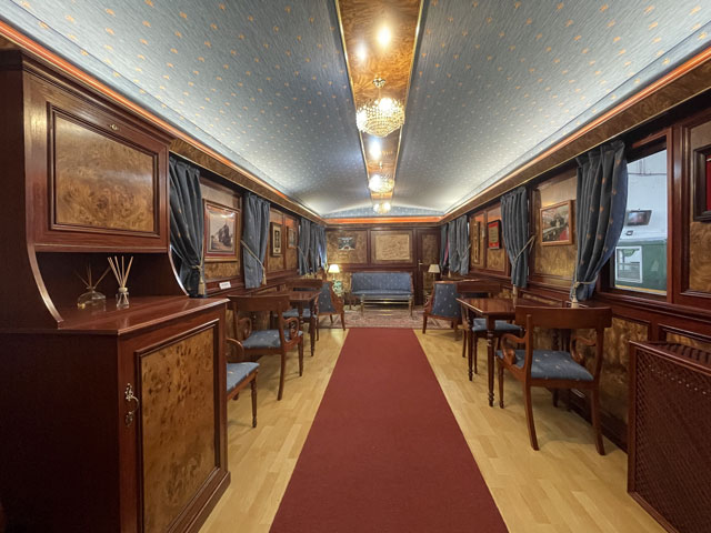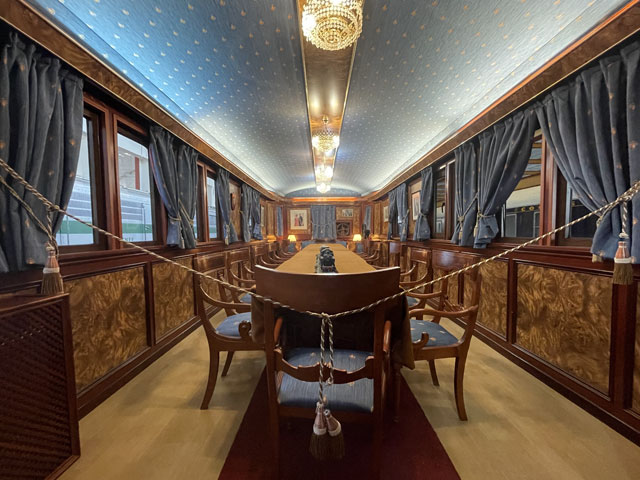 Unter den Waggons stachen zwei heraus, die dem Regimentsstab eines Eisenbahnregiments dienten und sehr komfortabel mit Stilmöbeln ausgestattet waren. In einem Wagen stand ein Tisch, der fast die ganze Länge einnahm, der andere war wie ein Salonwagen mit kleinen Sitzgruppen ausgestattet. Sehr komfortabel, wie die Herren in den Krieg gezogen sind oder wären.