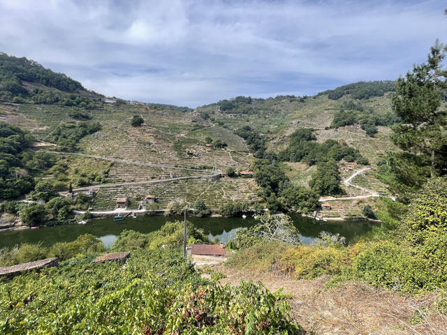 Als die Sprache auf Wein kam, weil ich ihn fragte, ob er auch einen Weinberg hat, kam er ins Schwärmen. Das ist ja hier eine ganz besondere Weingegend, die „Ribeira Sacra“ (Heiliges Uferland), und natürlich hat er auch einen kleinen Weinberg, den er zusammen mit einem Bekannten bewirtschaftet, der Ahnung davon hat. Er habe einen sehr guten Wein und den müsste ich unbedingt kosten. Zwei Minuten später hatte ich statt einer ausgetrunkenen Wasserflasche eine Weinflasche mit edlem Etikett und Seriennummer in der Seitentasche meines Rucksacks.