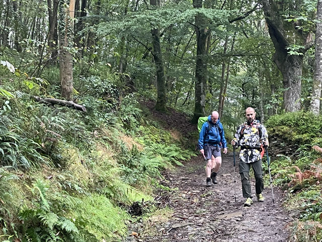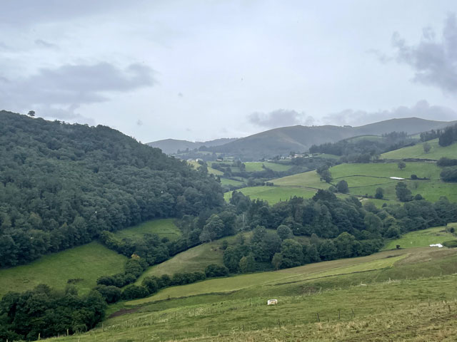 Also: heute gab es mehr Regen als Regenpausen. Keine starken Regengüsse, aber immer so viel, dass man den Poncho überziehen musste. Die Temperatur wurde mit 13 Grad angegeben. Auf manchen Pfaden war es sicher noch kälter, weil je nach Lage mitunter ein ziemlich scharfer, kalter Wind wehte. Gestern hat man das Wetter noch viel erträglicher vorhergesagt.