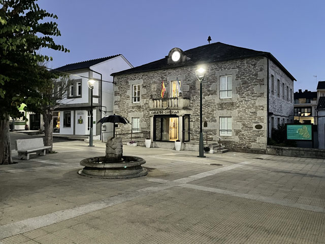 Nach erneutem Studium von Karte und Herbergsverzeichnis hatte ich davon Abstand genommen, hinter Lugo auf den Camino del Norte (CdN) zu wechseln, um mich so später in den Pilgerstrom auf dem Camino Francés einzureihen. Von Lugo nach Sobrado am CdN sind es über 50 km und nur auf der Hälfte, in Friol, gibt es ein paar Herbergsbetten. Dort zu reservieren habe ich mich gesträubt und auf gut Glück loszulaufen, schien mir zu riskant. Deshalb habe ich mich entschlossen, von Lugo aus den üblichen Weg nach Melide zu nehmen. Damit entgeht mir nur leider das Wegstück entlang des Rio Mera gleich hinter Lugo, das mich in den angeschauten Videos so beeindruckt hat. Als abzusehen war, dass ich schon am frühen Nachmittag in Lugo sein werde, habe ich beschlossen, am Machmittag noch das besonders schöne Wegstück zu laufen und auf einem anderen Weg nach Lugo zurückzukehren.