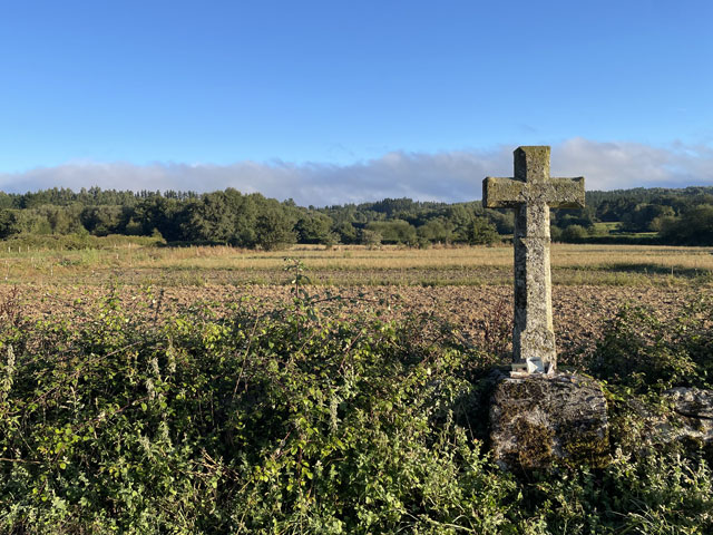 Dass ich gestern noch knapp 8 km weitergelaufen bin, hat sich bezahlt gemacht. Nicht nur, dass es bei sieben Herbergsnutzern geblieben ist, während in O Cadavo die kommunale Herberge voll war, sondern auch, dass auf dem Weg nicht viel los war, da insgesamt nur wenige in Castroverde übernachtet haben. Wir sind alle ziemlich zeitgleich kurz nach sieben aufgebrochen und haben uns über den Weg verteilt. Der war richtig schön. Es waren überwiegend feste, glatte Wald- und Feldwege sowie fast unbefahrene, kleine Landstraßen. Wenn es mal an einer Fernstraße entlang ging, dann hat man dort einen breiten Fußweg angelegt. Dort, wo der Platz am Straßenrand knapp war, hat man an der Böschung einen hölzernen Laufsteg auf Stelzen gebaut. Es ging auch überwiegend sehr eben voran, nur gelegentlich mal ein zu überwindender Hügel. Kein Vergleich zu den zurück liegenden Tagen. Es war heute trocken und gelegentlich kam sogar die Sonne raus - alles ideale Wanderbedingungen.