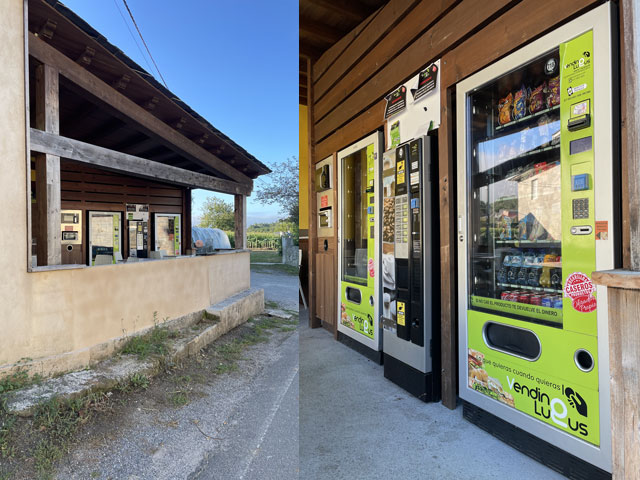 Richtige Orte gab es allerdings nicht am Weg, abgesehen von Gondar, einem kleinen Dorf, das aber nur gestreift wurde. Da hat jemand kurz vor dem Dorf einen ganz ansprechenden Rastplatz mit vielen Sitzgelegenheiten hergerichtet und sich dort mit einem kleinen Obst- und Kaffeestand platziert. Appetit auf Kaffee hätte ich ja gehabt, aber welchen, der wahrscheinlich schon eine Weile in der Thermoskanne rumsteht, mag ich nicht. Dann schon lieber Kaffee aus dem Automaten. Den gab es erfreulicherweise dreihundert Meter weiter. Da hat ein lieber Mensch einen überdachten Rastplatz mit drei oder vier Tischen und Stühlen gebaut und diverse Automaten aufgestellt, darunter auch einen Kaffeeautomaten - sogar einen, der nicht nur Kaffee, sondern auch den zugehörigen Becher liefert.