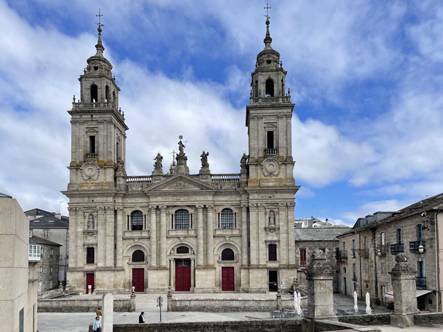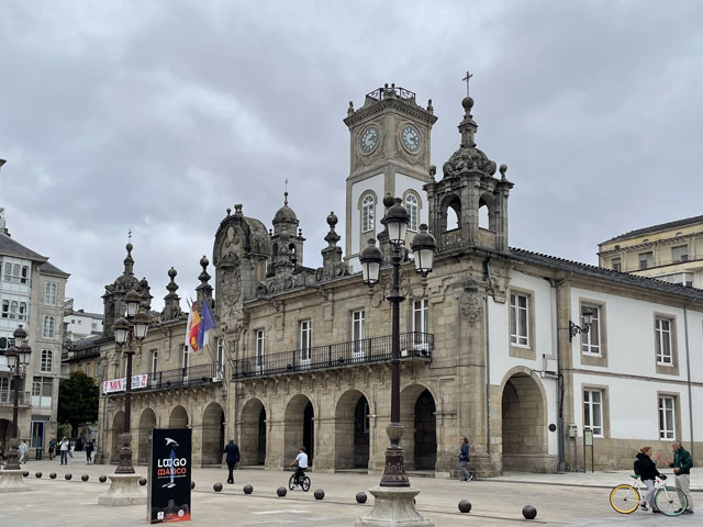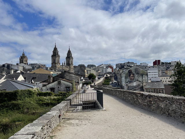 Nun war es nicht mehr weit bis zur Stadtmauer aus der Römerzeit, die zwei Kilometer lang ist und die ganze Innenstadt umschließt. Der Camino führt durch eines der zehn Tore ins Stadtzentrum hinein und schon in der nächsten Gasse auf der rechten Seite stößt man auf die kommunale 10 €-Herberge. Als ich kurz vor halb drei kam, waren erst ein paar Betten belegt. Inzwischen ist sie voll geworden und ich habe viele bekannte Gesichter wiedergetroffen.