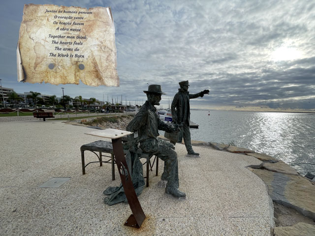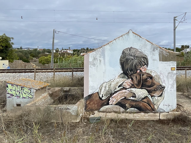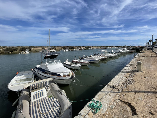Knapp 10 km hinter Faro erreicht man Olhão, eine ganz nette Hafen-stadt. Zunächst kommt man an einigen neuen, sehr komfortabel aussehenden Wohnblocks vorbei, in denen einige Wohnungen sicher nur als Ferienwohnung dienen, andere aber richtig bewohnt aussehen. An der Hauptstraße, die sich entlang des Ufers durch den Ort zieht, gibt es viele Geschäfte und Restaurants und an manchen Häusern kann man schöne, alte Fassaden entdecken. Zum Wasser hin finden sich erst eine sehr ordentliche neue Marina und dann zwei Markthallen, eine für Fisch und die andere für sonstige Lebensmittel. Da macht es Spaß, durch die Reihen zu schlendern und den Verkäufern beim Zubereiten ihrer Waren zuzuschauen. Dort wird der sicher fangfrische Fisch vor Ort ausgenommen, ebenso in der anderen Halle das Geflügel. Der ganze städtische Küstenabschnitt ist mit Liegeplätzen von Freizeitbooten versehen. Am Ufer reihen sich die Kioske, in denen man Boote ausleihen oder Bootstouren buchen kann. Die waren aber alle verrammelt. Vermutlich ist die Saison vorbei, obwohl noch richtig sommerliches Wetter ist. Ich bin heute früh bei 18 Grad im T-Shirt losgelaufen.