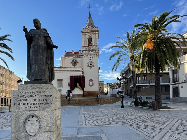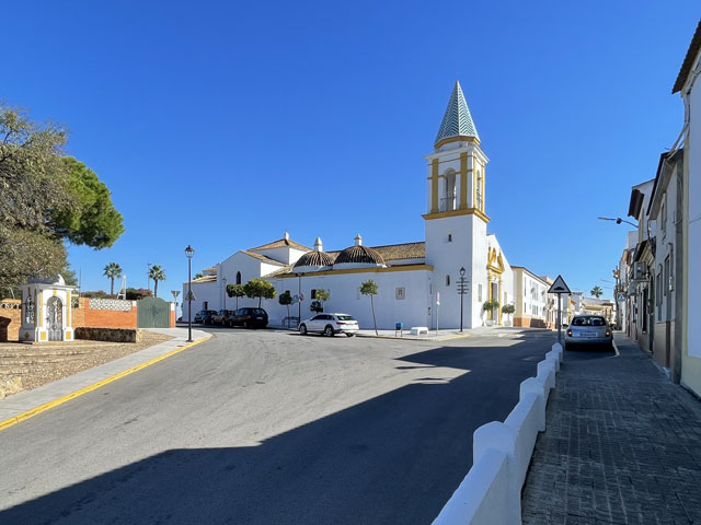 Britta und Thomas, die ich vor drei Tagen getroffen habe, erzählten mir, dass sie in Huelva in einem Kloster übernachtet haben, worauf ich bei Google nach „Übernachten Kloster Huelva“ gesucht habe und von Booking.com, Expedia usw. Übernachtungen in Klöstern weltweit, aber nicht in Huelva angeboten bekommen habe. Und das Kloster „La Rábida“ in Huelva (Monasterio de Santa María de La Rábida), das man besichtigen kann und wo die Reisegruppen hin gekarrt werden, schied irgendwie aus. Nach wiederholtem Abhören der Sprachnachrichten war klar, dass es sich nur um das „Santuario de Nuestra Señora de la Cinta“ am nördlichen Stadtrand von Huelva handeln kann. Da werde ich also heute übernachten.