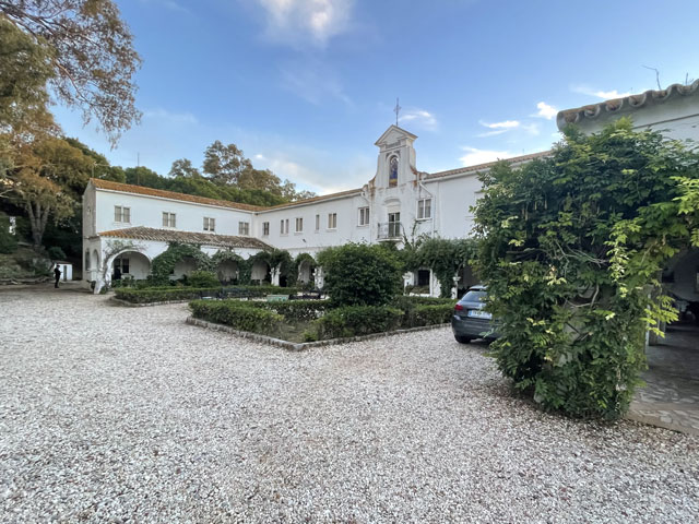 Auf mein Klingeln öffnete sich das Tor und ich stand auf dem U-förmigen Vorhof des kleinen, nur zweistöckigen Klostergebäudes, dessen Obergeschoss offenbar ausschließlich Gästezimmer enthält. Von den Nonnen habe ich nur jene zu sehen bekommen, die mir den Schlüssel überreicht und mein kleines, aber ordentliches Zimmer gezeigt hat. Ansonsten laufen hier viele Priester herum, die vermutlich zu Exerzitien, also zur „geistlichen Weiterbildung“ hier weilen. Pilger habe ich leider nicht angetroffen.