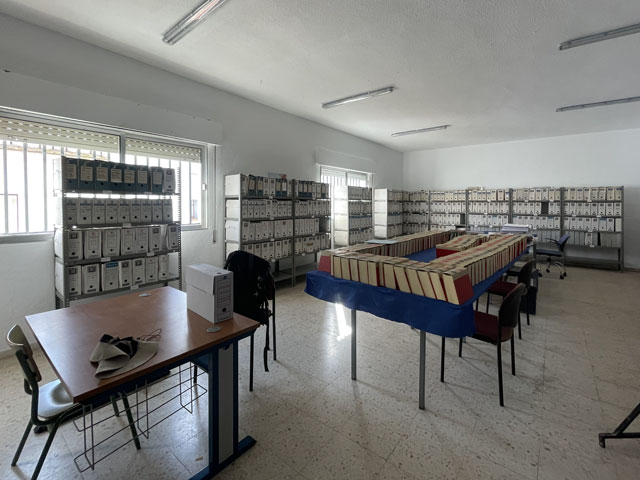 Dann habe ich mich zum Polizeirevier aufgemacht, vorbei an mehreren geschlossenen Kirchen und nur einer offenen Kapelle gegenüber dem Rathaus. Die beiden Polizisten im Revier waren informiert und haben mir nach dem Kopieren meines Ausweises einen Schlüsselbund in die Hand gedrückt. Dann hat mich einer in einen Raum eine Etage höher geführt, wo ich schlafen kann. Das ist offenbar das Archiv des Rathauses. Da stehen ringsum in Metallregalen Archivboxen mit irgendwelchen ausgelagerten Akten und in der Mitte des Raumes sind auf zusammengeschoben Tischen diverse Bücher gestapelt und aufgereiht, darunter 118 Bände mit Sitzungsprotokollen und Gesetzen der Regierung aus den Jahren 1986-1999. Da hat mit Sicherheit noch niemand reingeschaut.